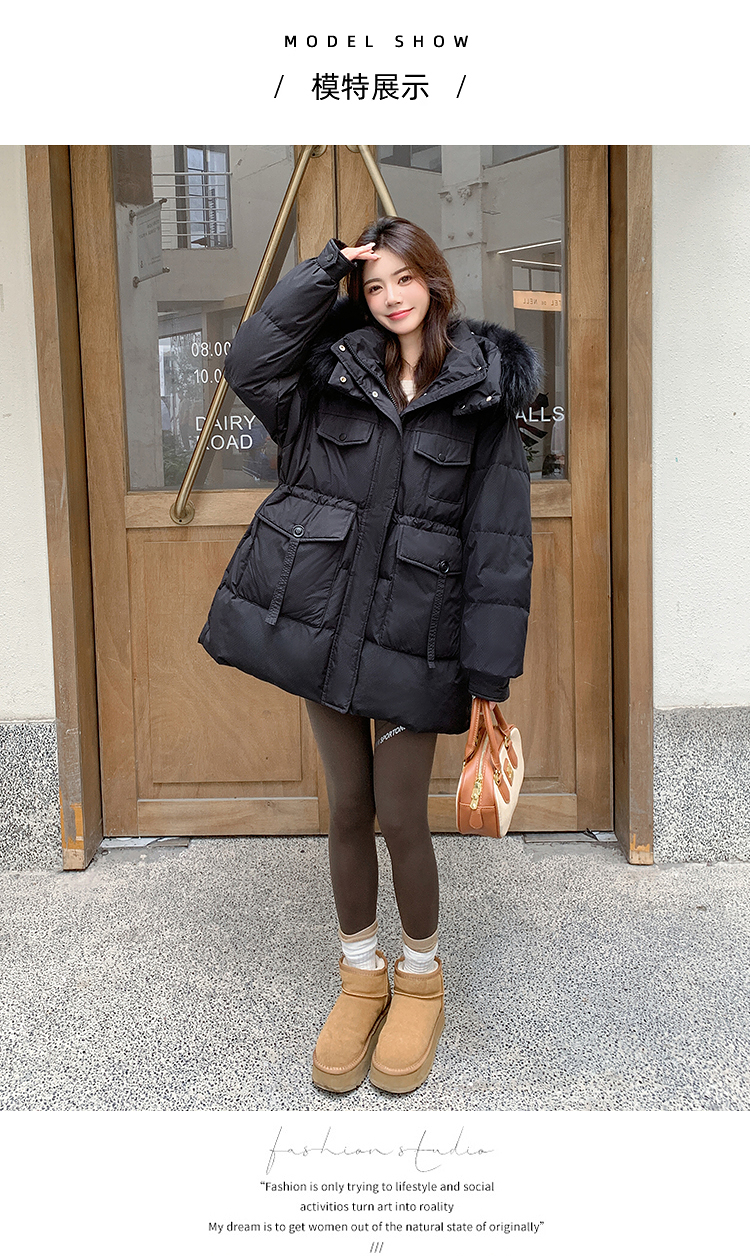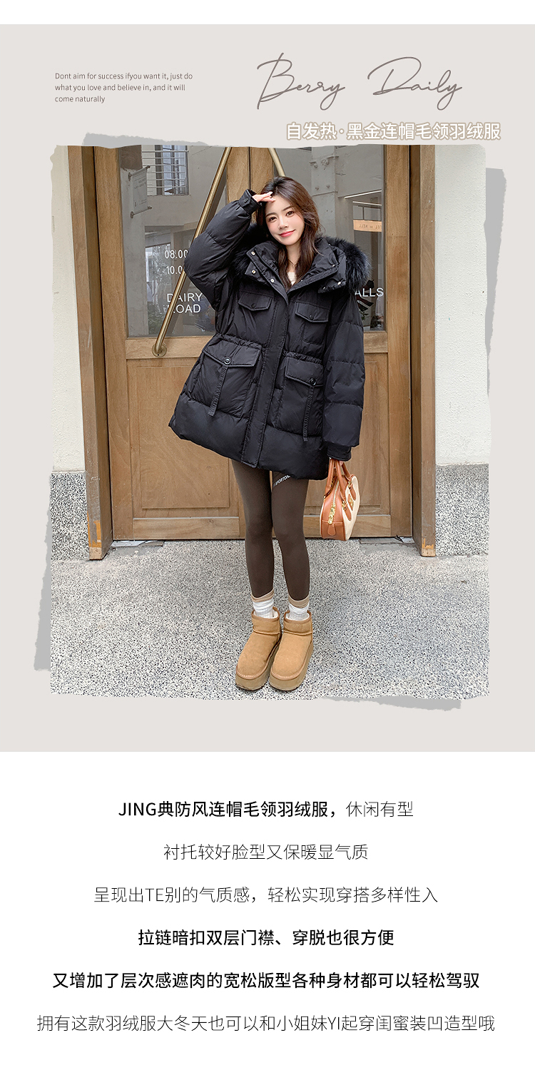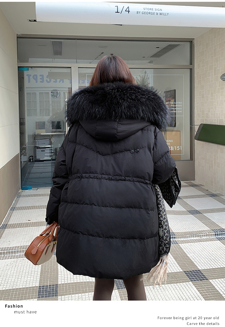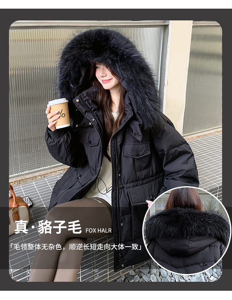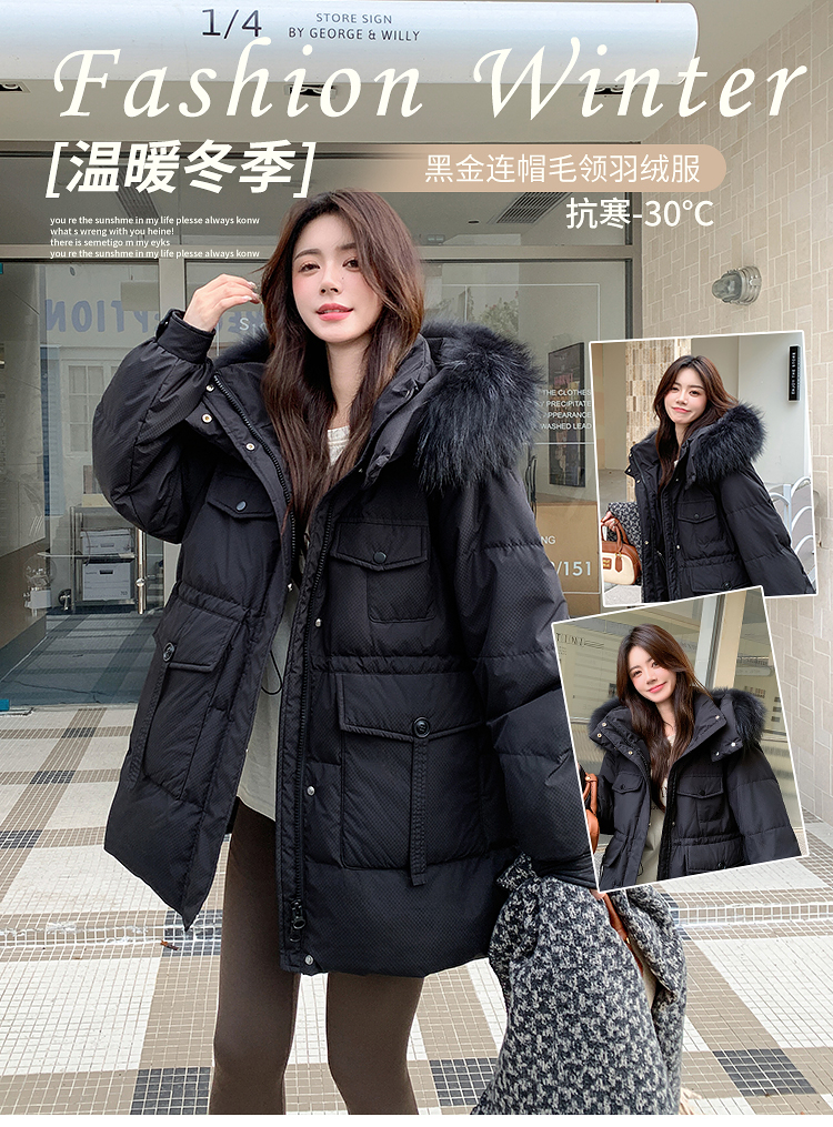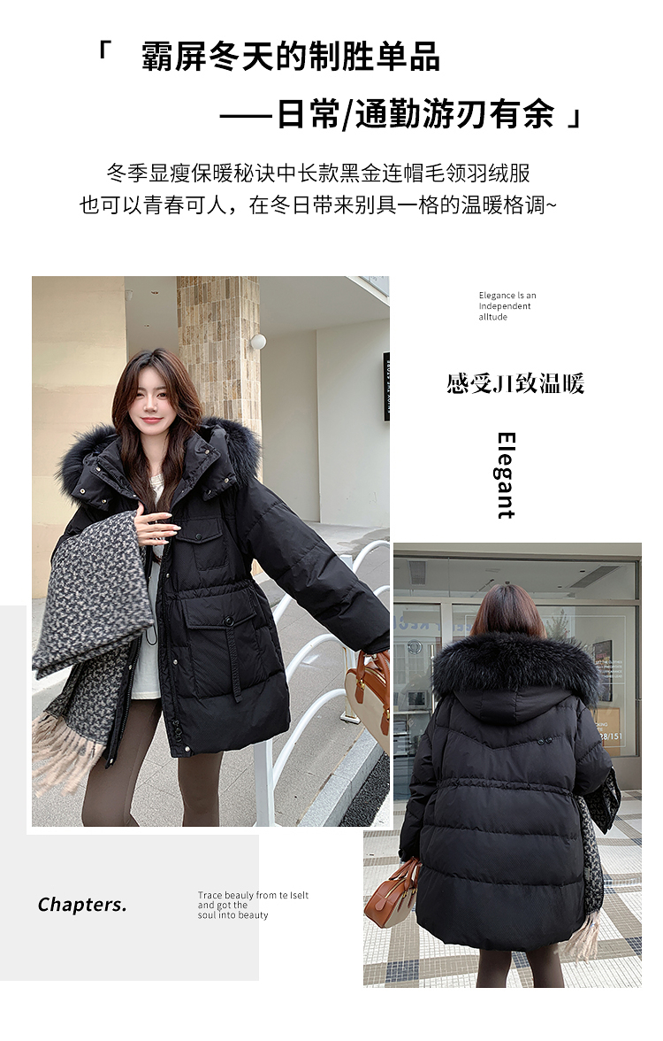 奢姿2025冬季大码女装胖妹妹可脱卸毛领连帽设计中长款百搭羽绒服7354300229