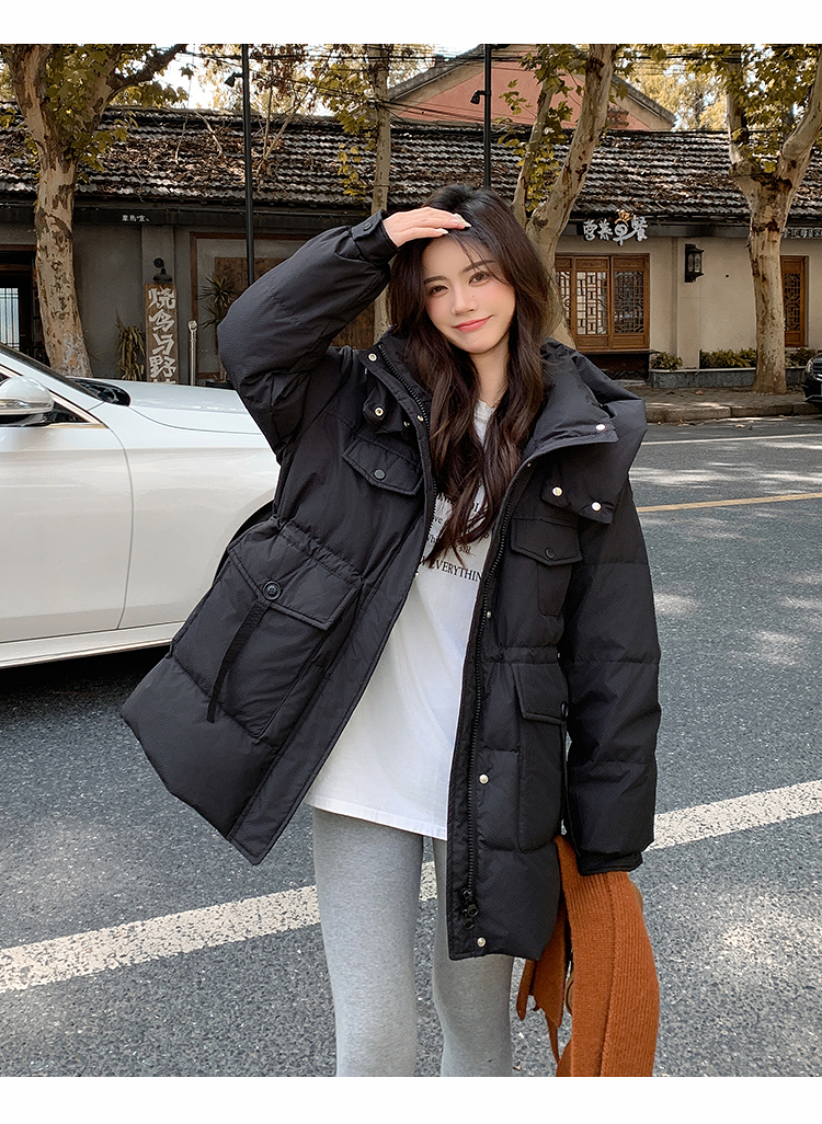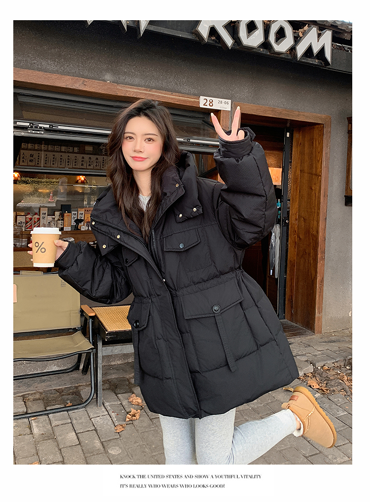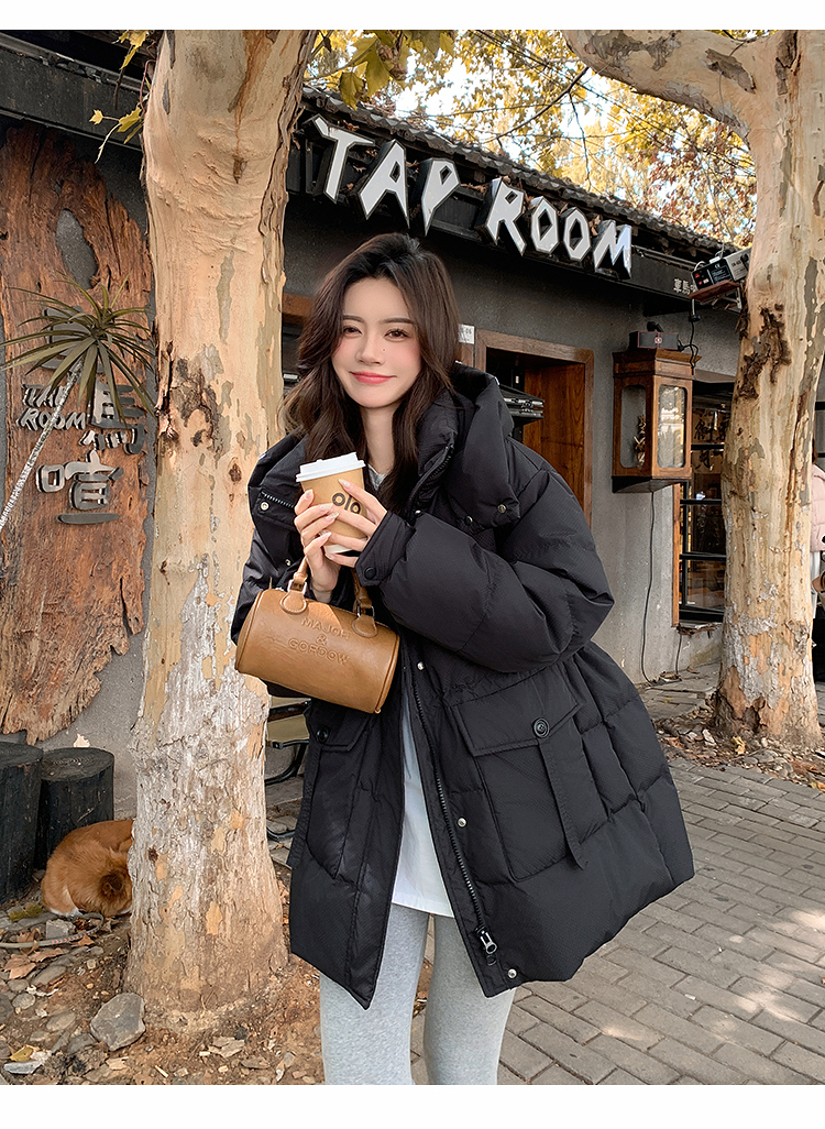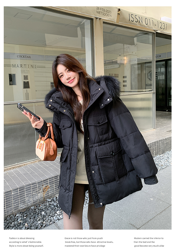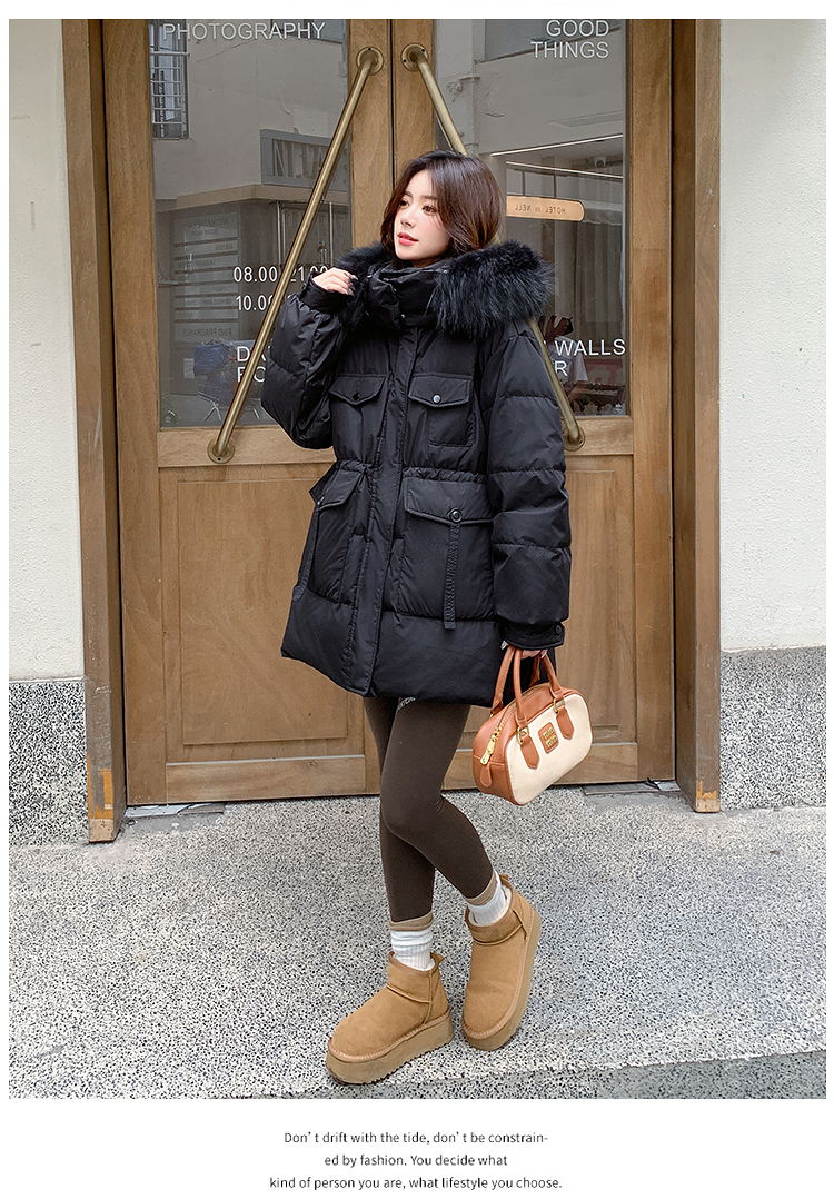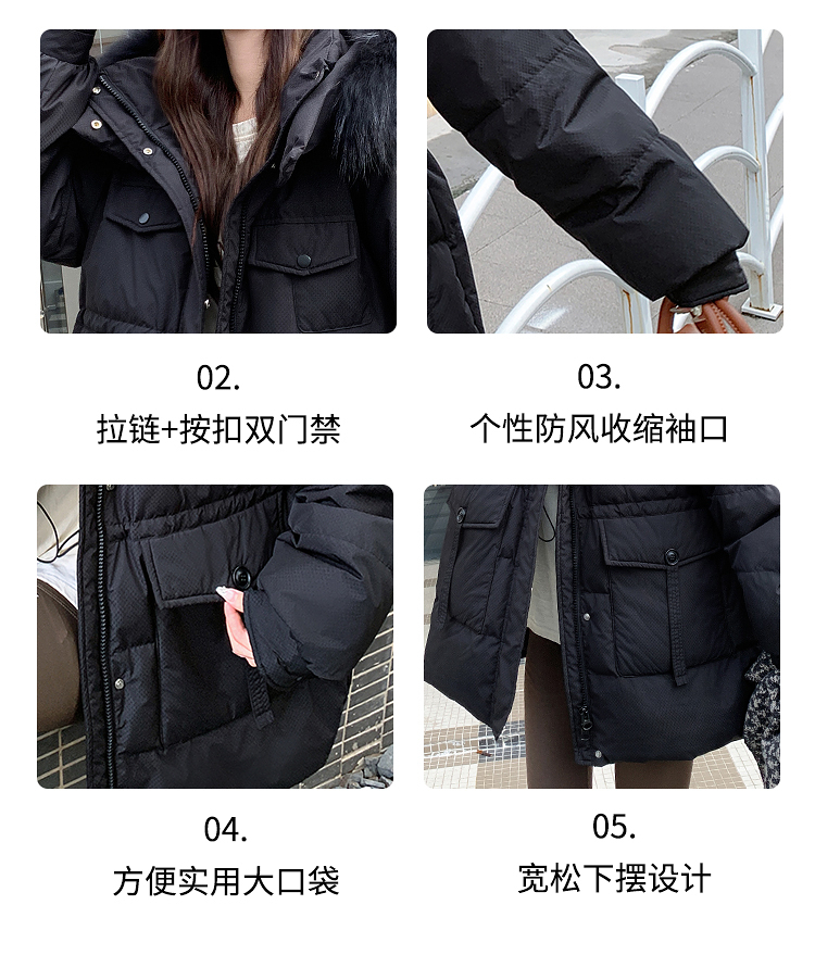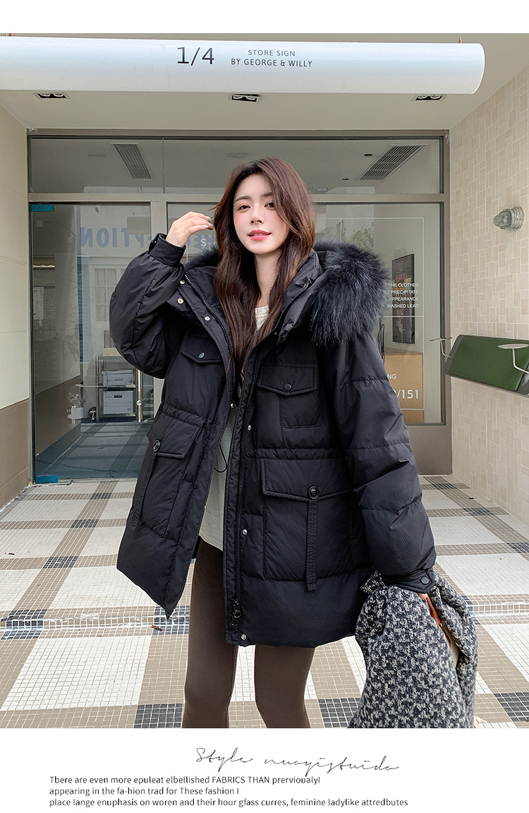 奢姿2025冬季大码女装胖妹妹可脱卸毛领连帽设计中长款百搭羽绒服7354300229