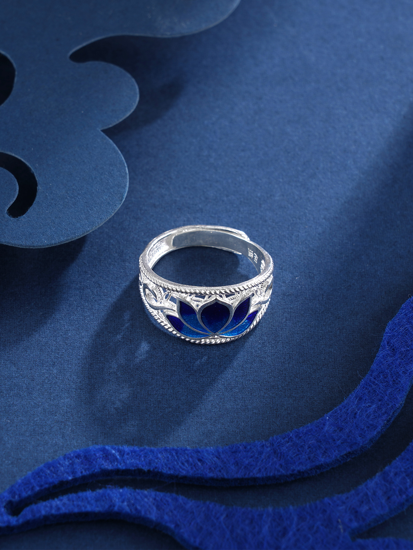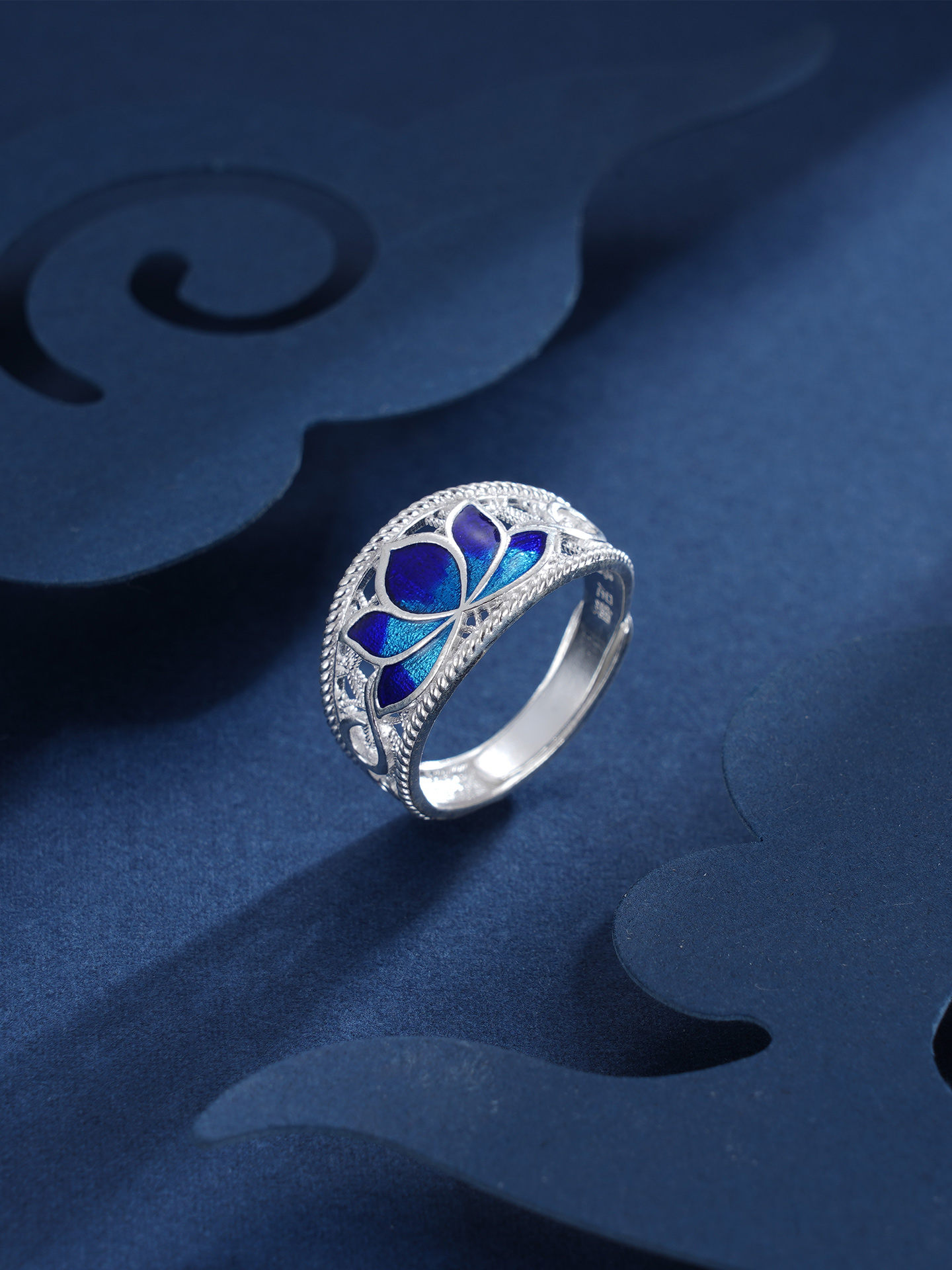 子佩集S990银【荷花福来】戒指【MXJZ020】花丝珐琅彩蓝色荷花莲花2401