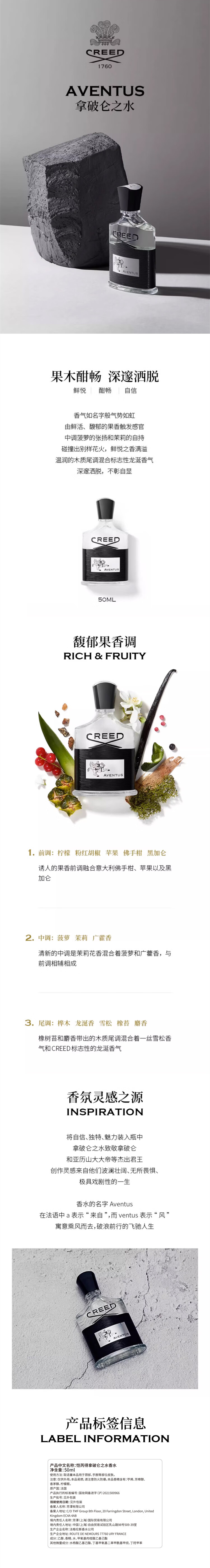 CREED恺芮得拿破仑之水香水50ml 柑橘木质调男女士