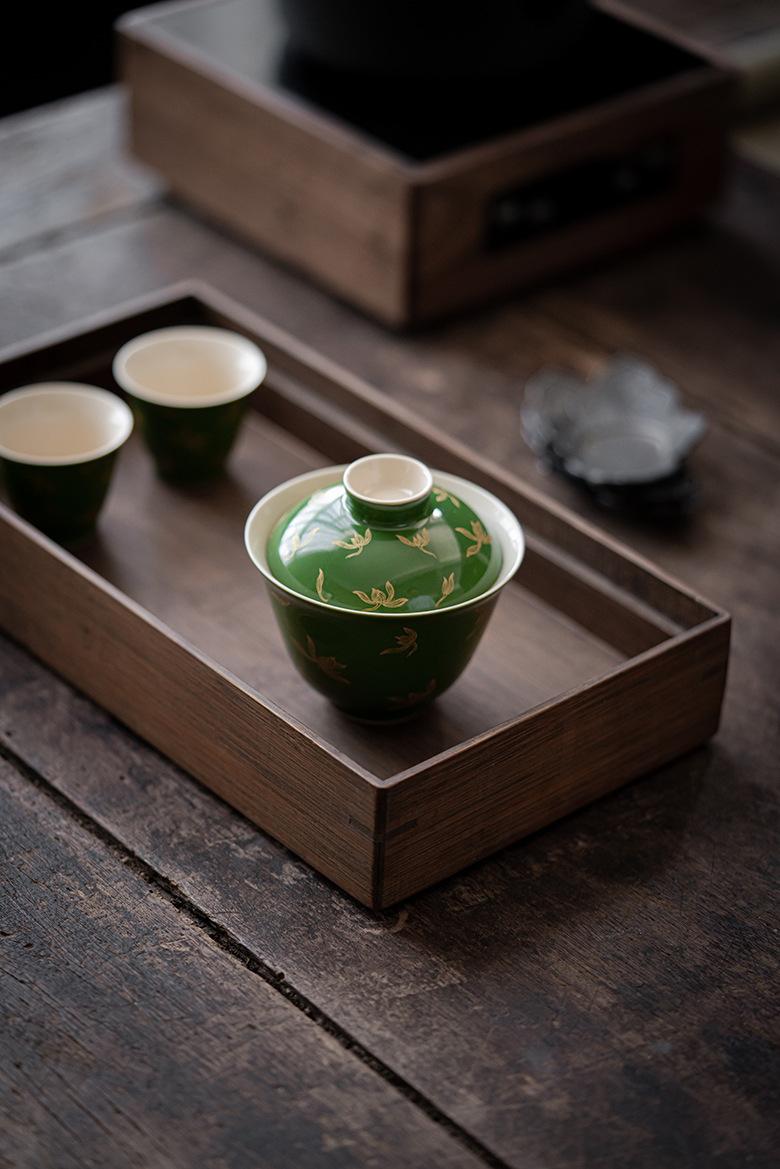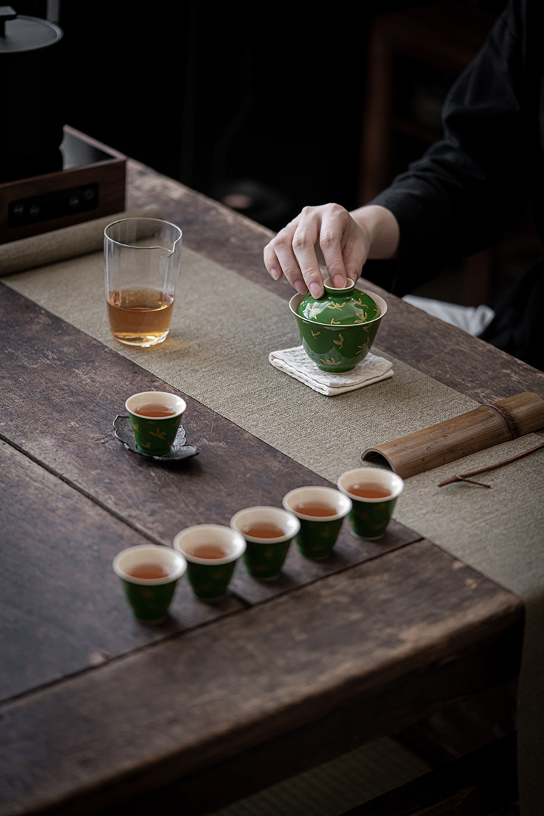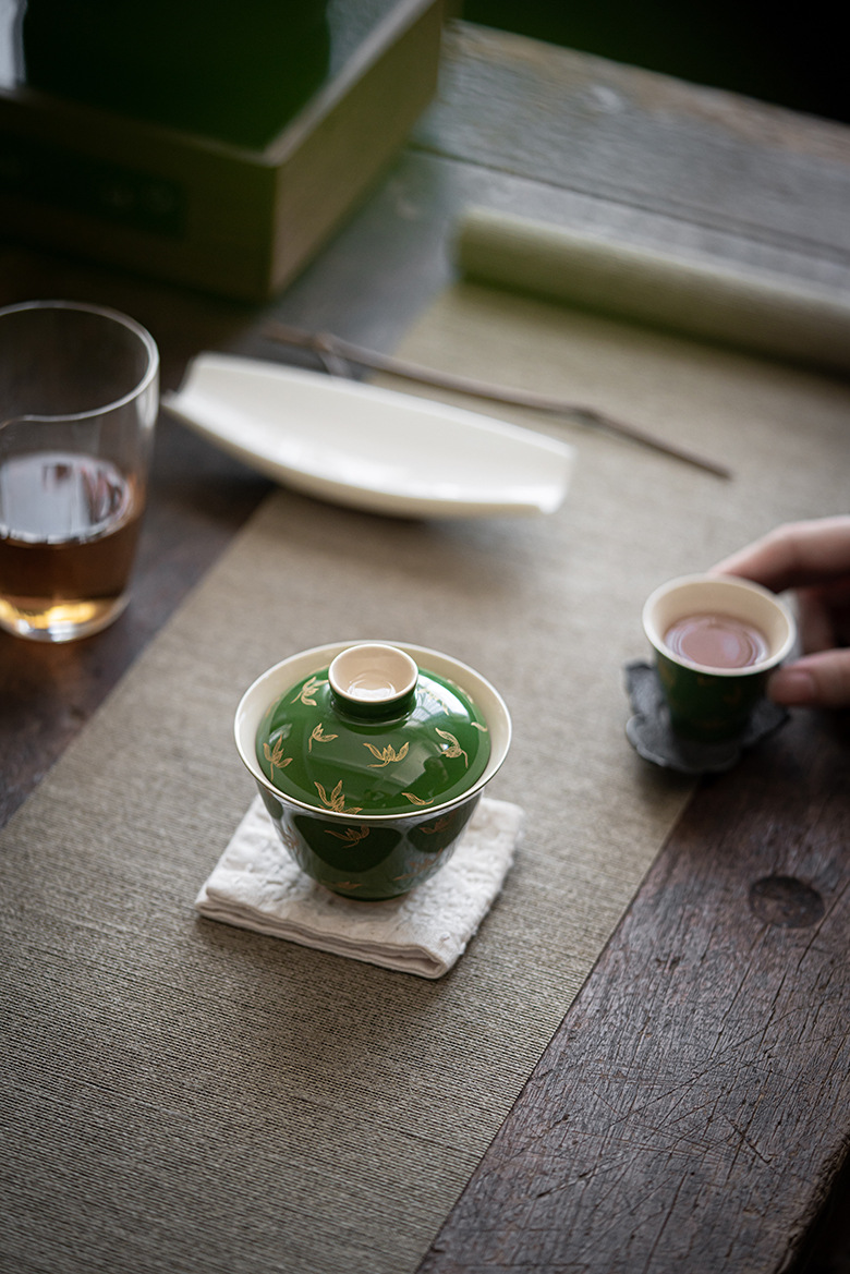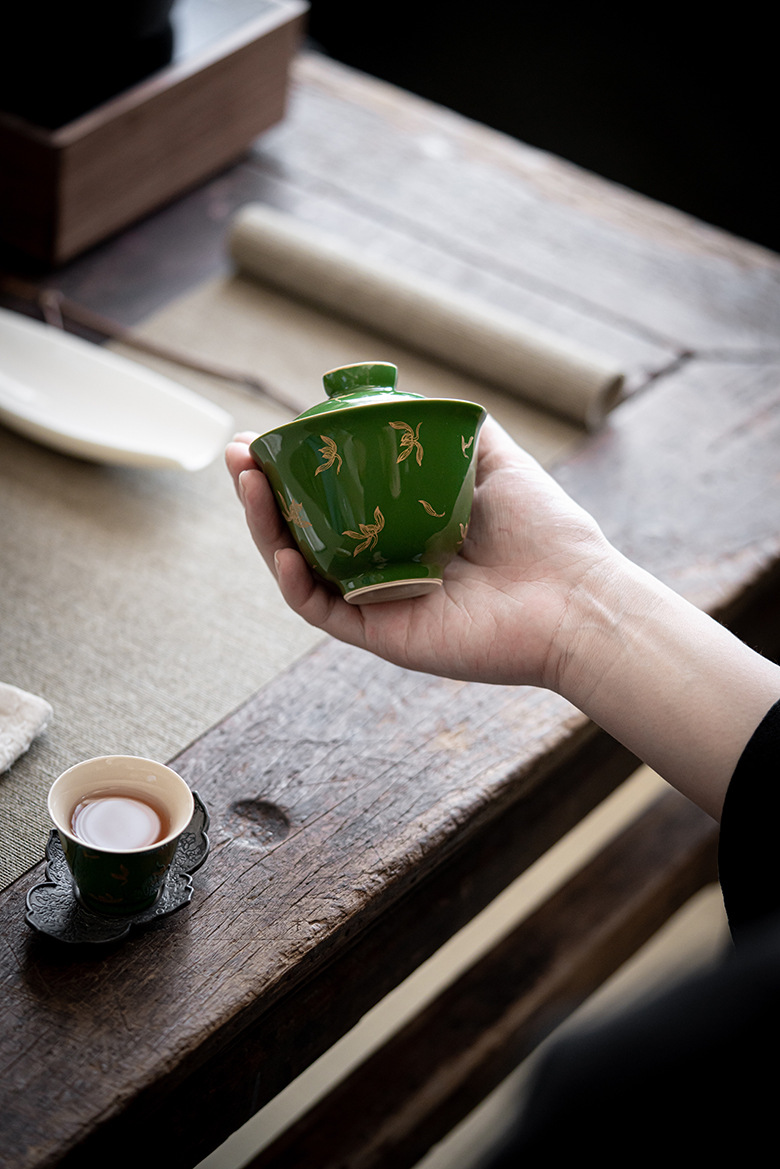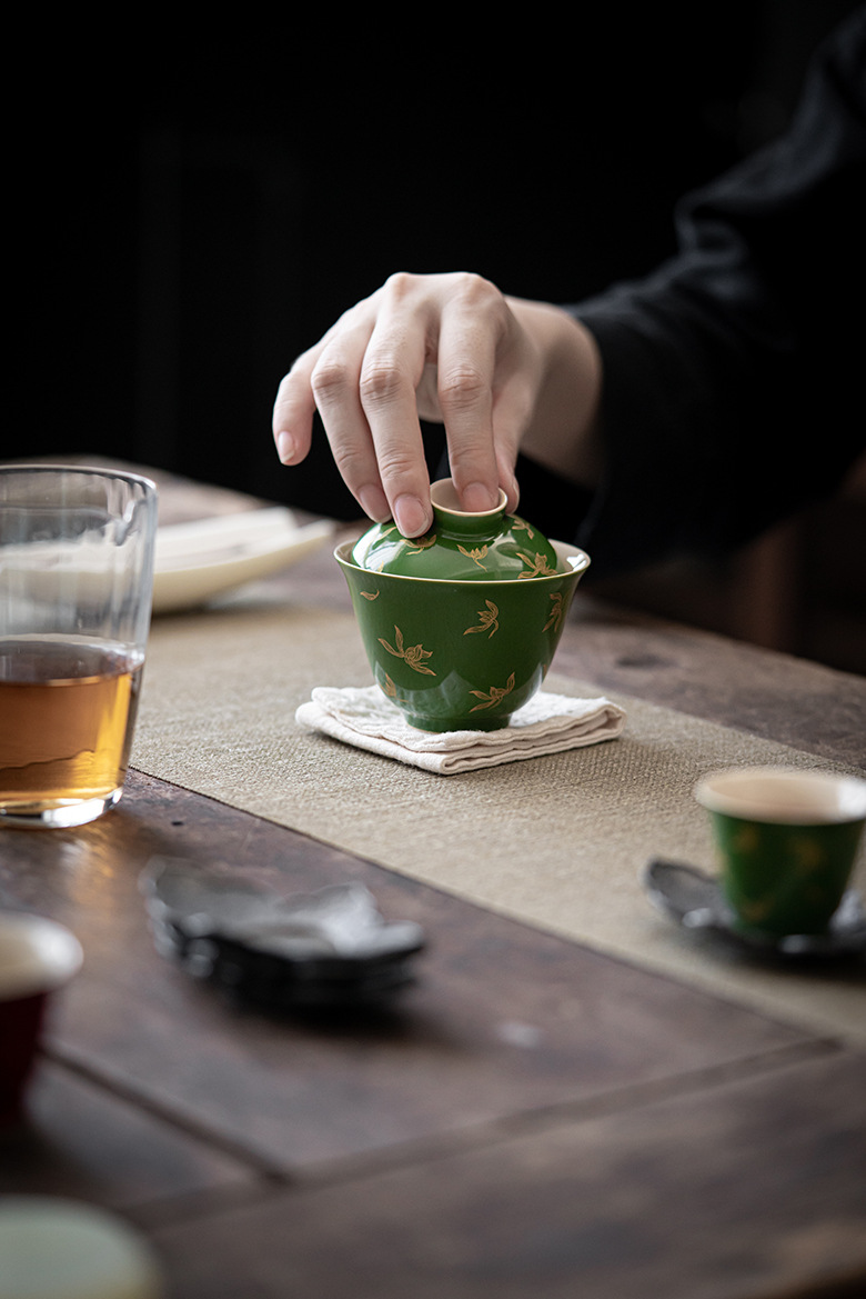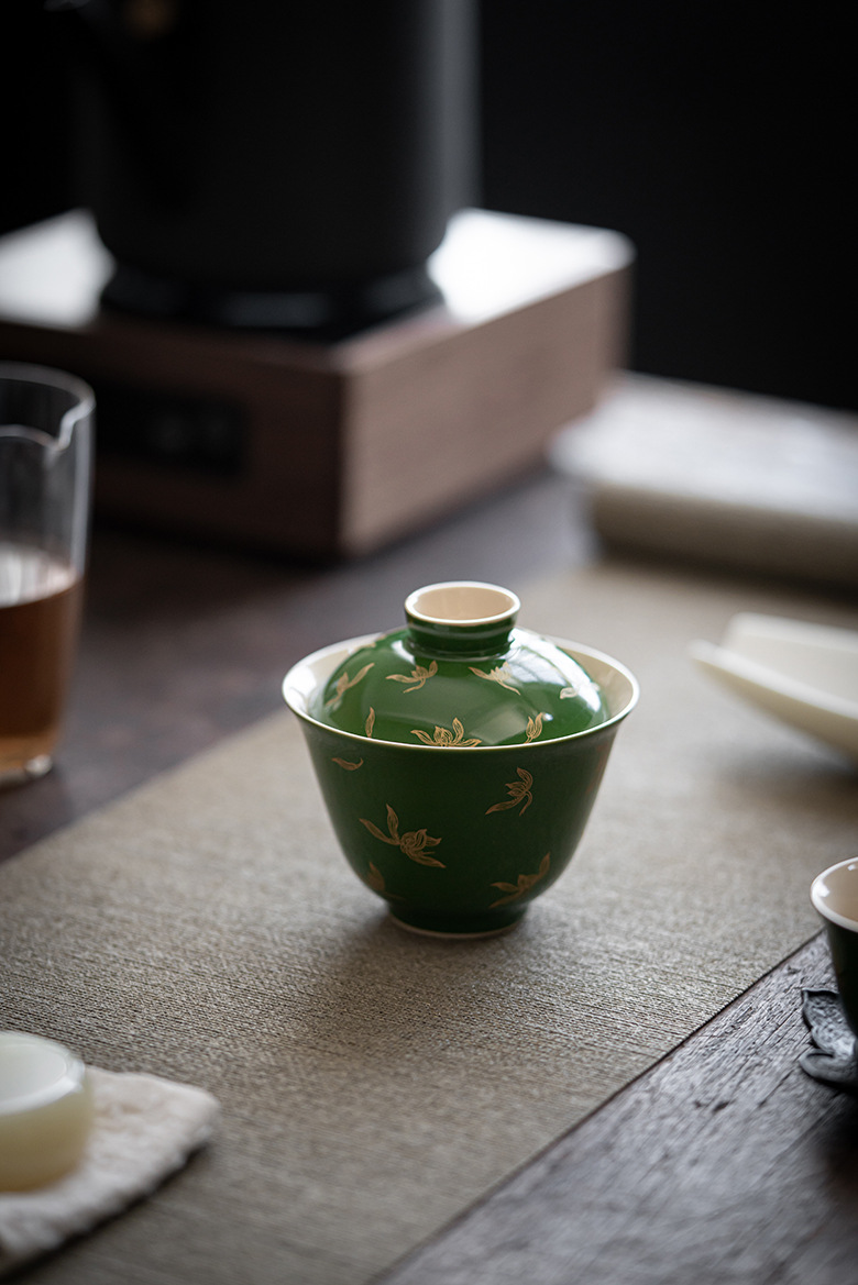 墨己 | 祖母绿烫金盖碗 仿古秋水兰花