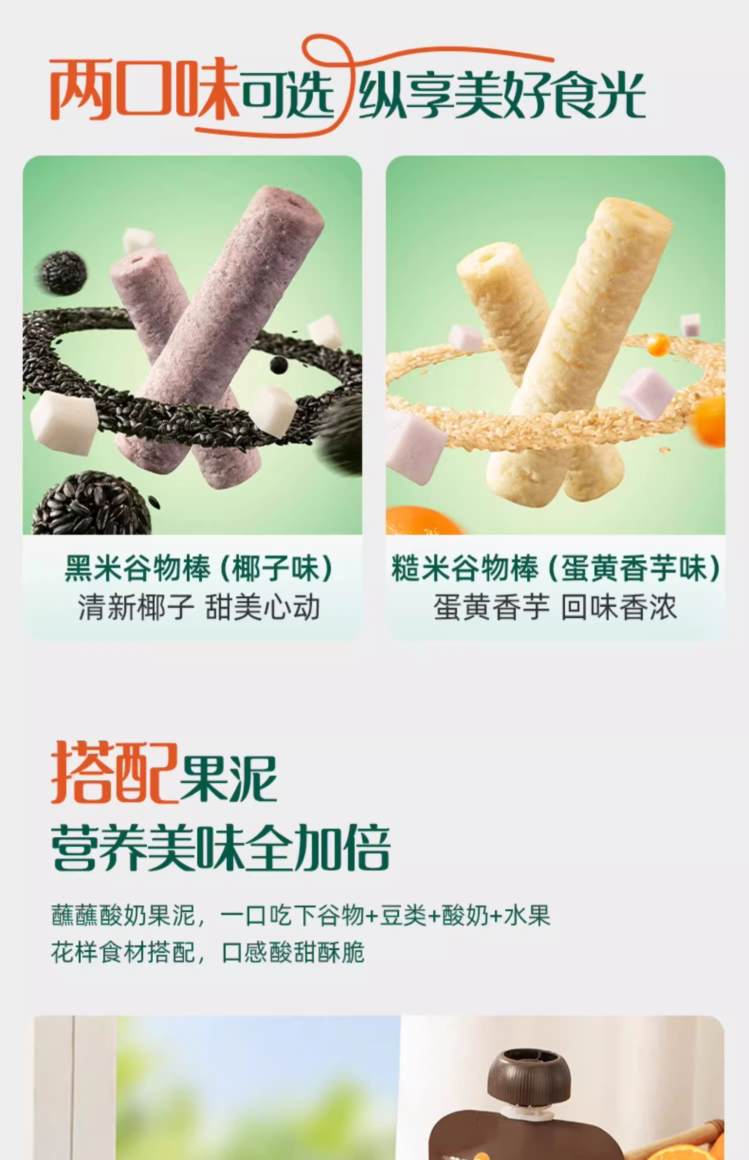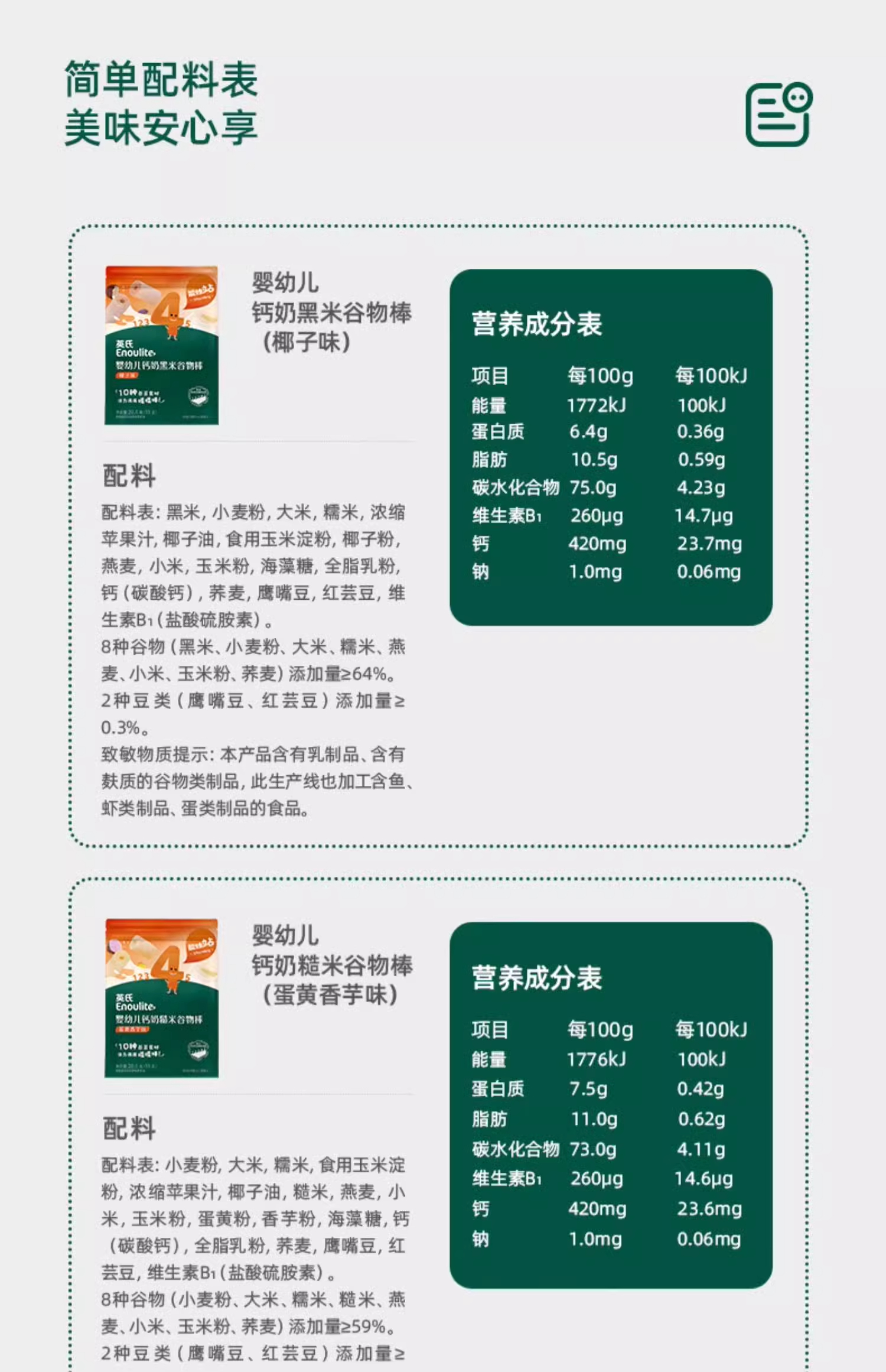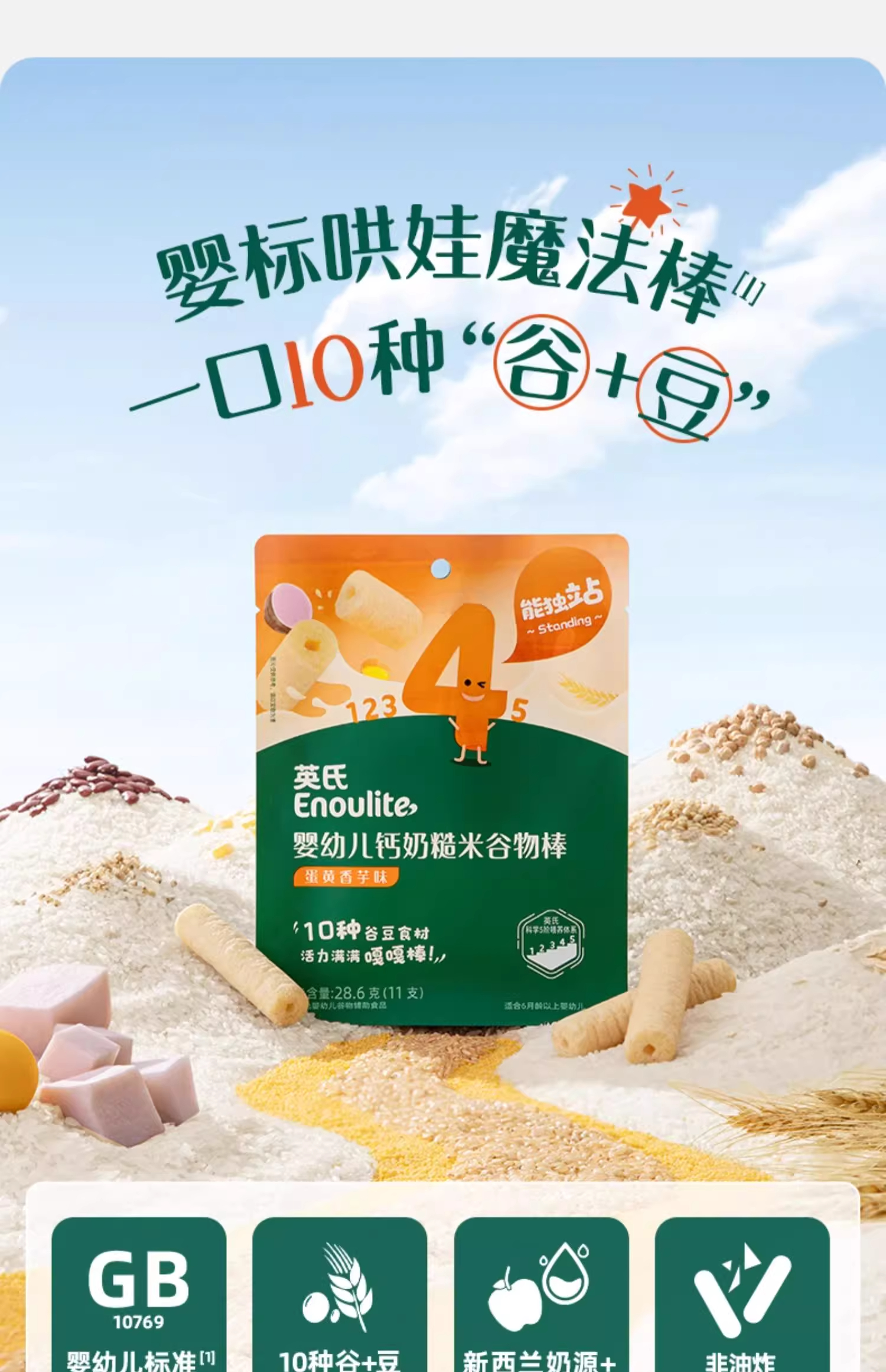 英氏 婴幼儿钙奶谷物棒 宝宝米饼无添加儿童零食饼干1岁送婴儿零食