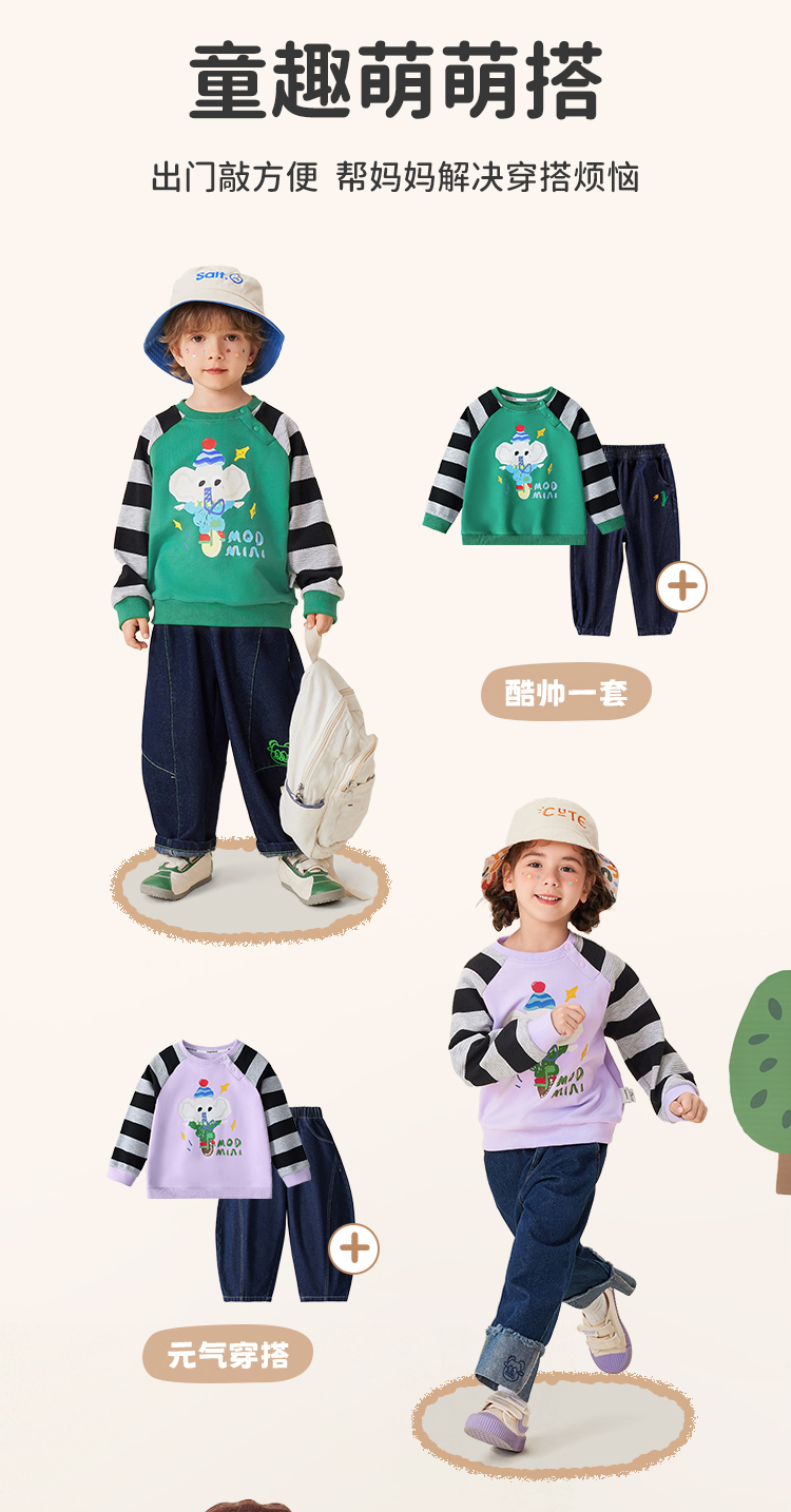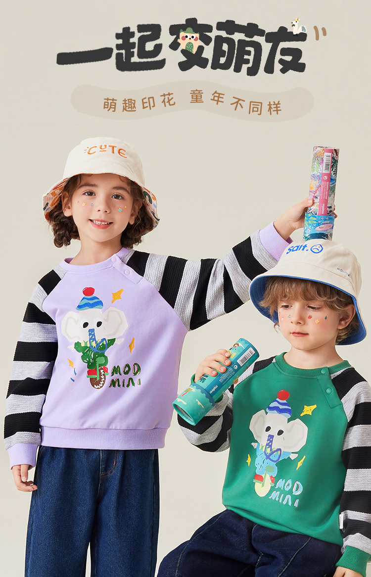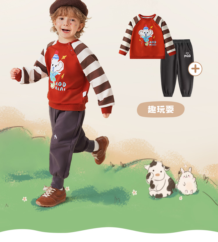 【5A抑菌】【80-140】【MQDmini】男女童春秋撞色插肩袖卫衣