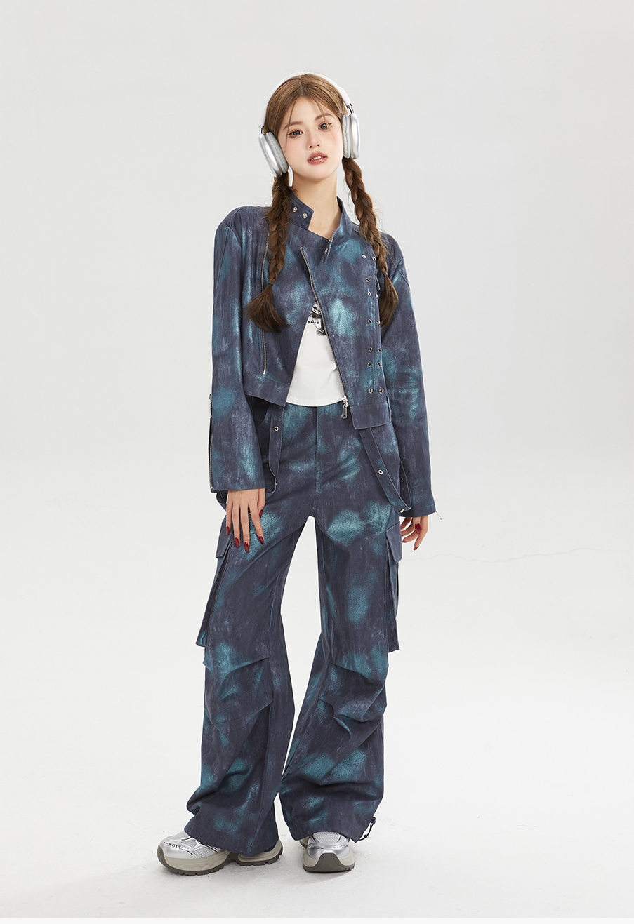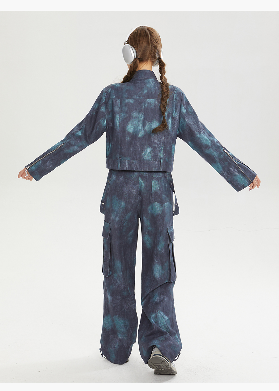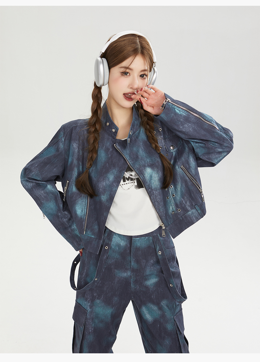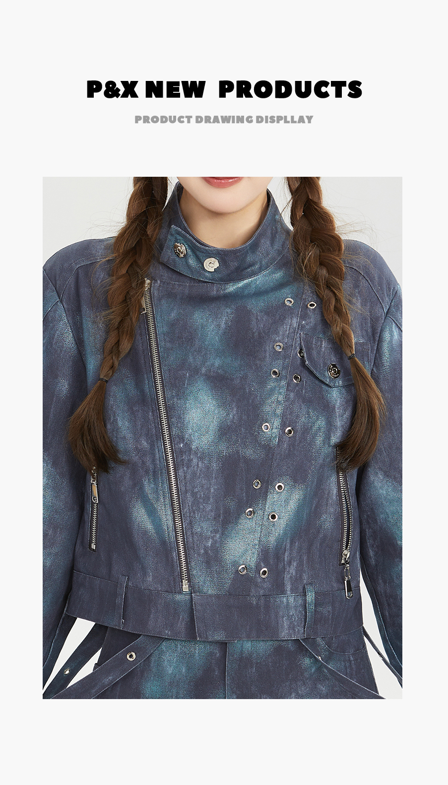 P&X设计师女装秋季扎染休闲运动立领微潮短款外套824313285 宝蓝