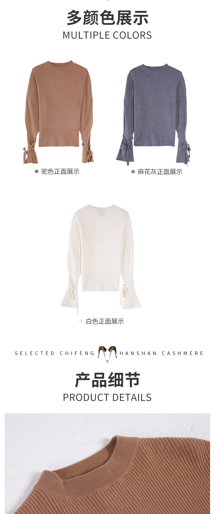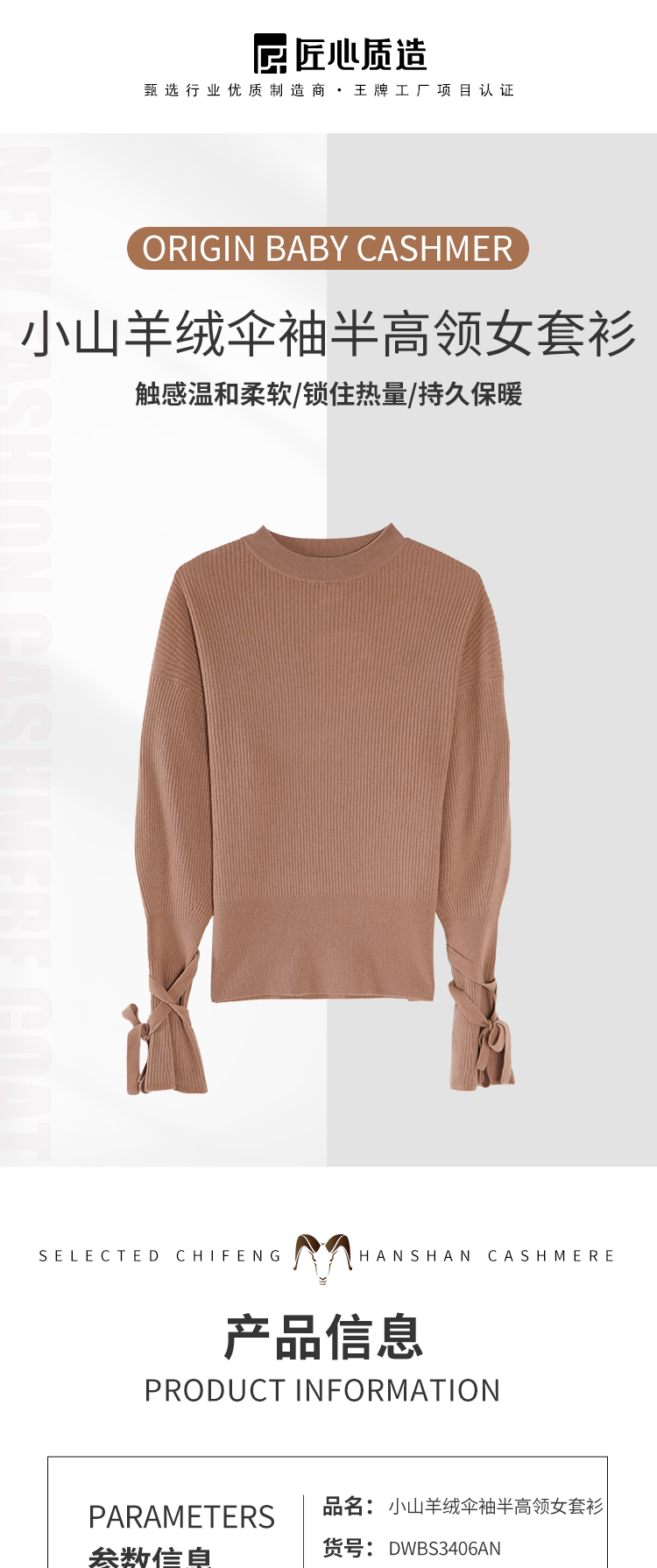 东黎 • 小山羊绒女士秋冬荷叶袖半高领套衫 3406