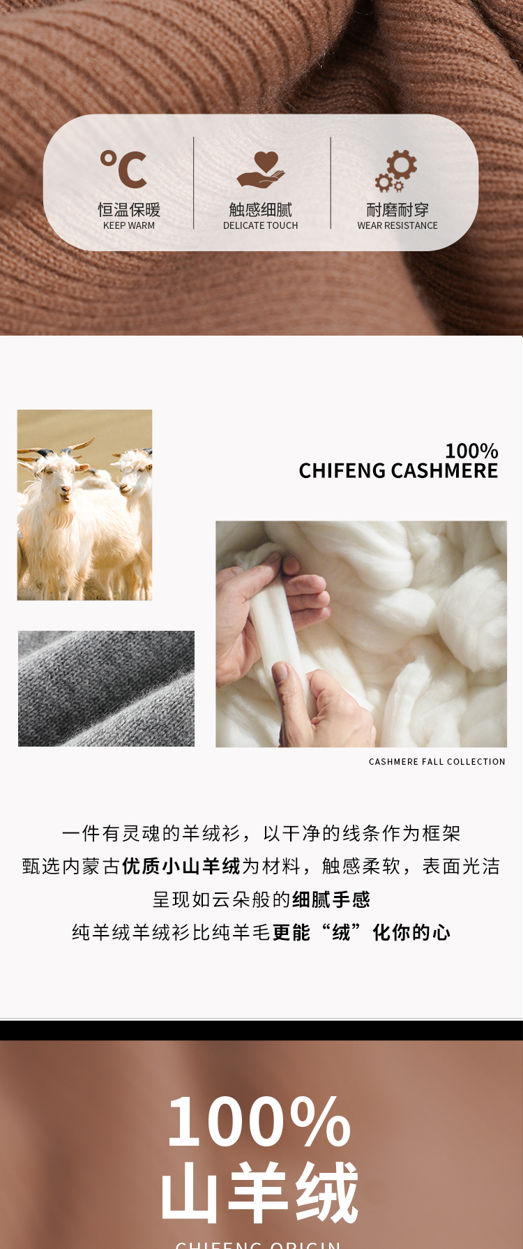 东黎羊绒是赤峰东荣集团自主品牌,自有牧场/羊绒制品全产业链优势,实现了羊绒从“牧场”到“商场”的华丽转变。