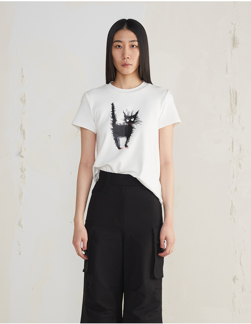 JUDYHUA 炸毛猫设计款T恤