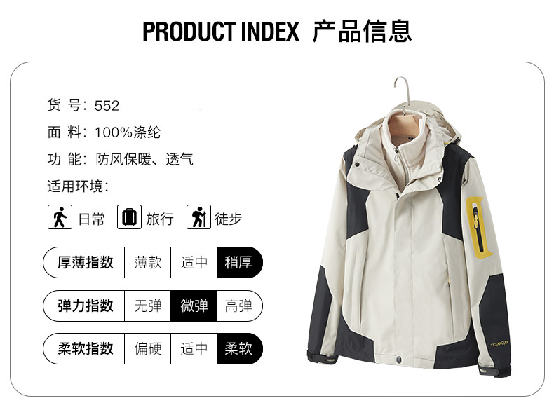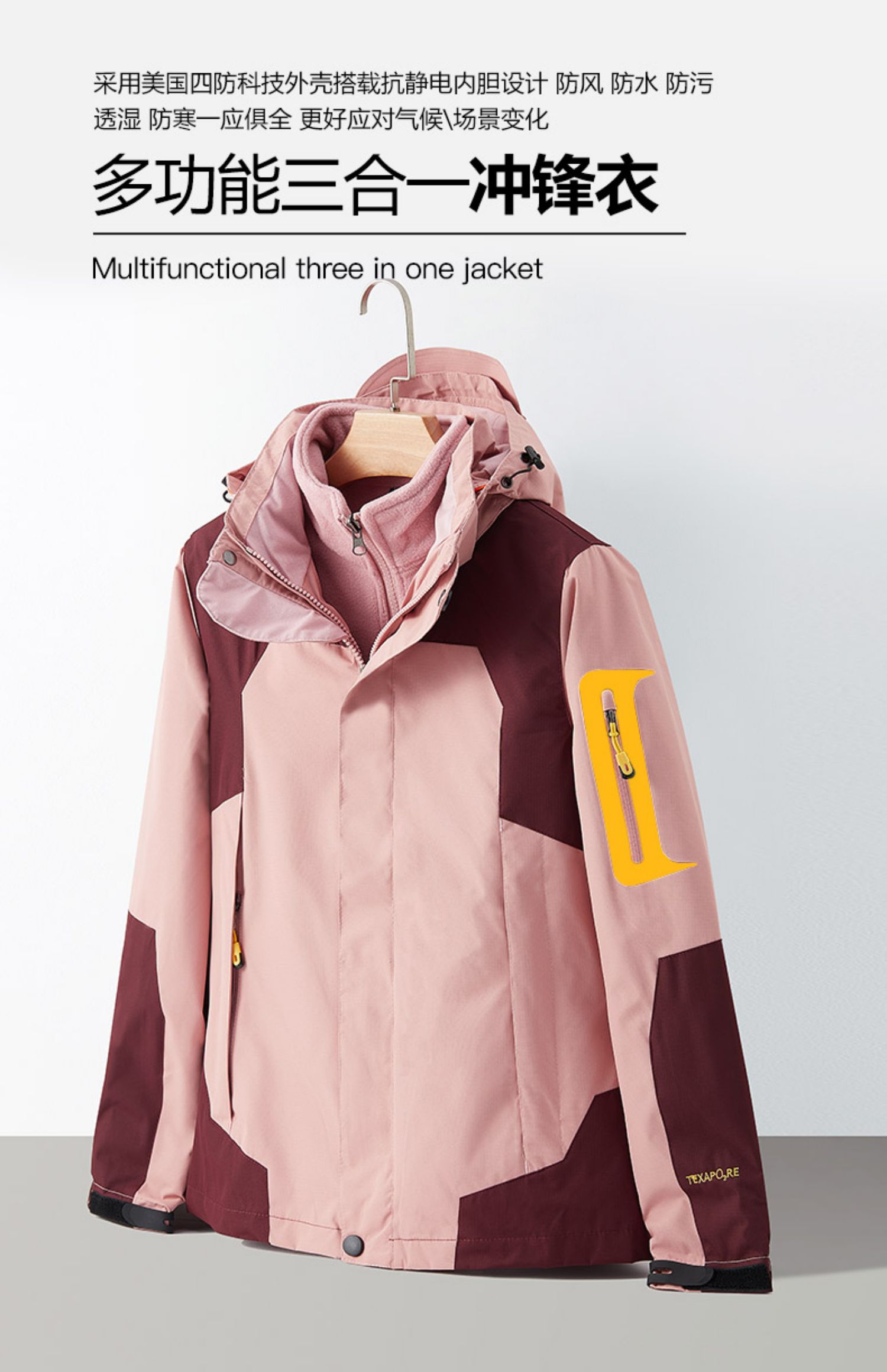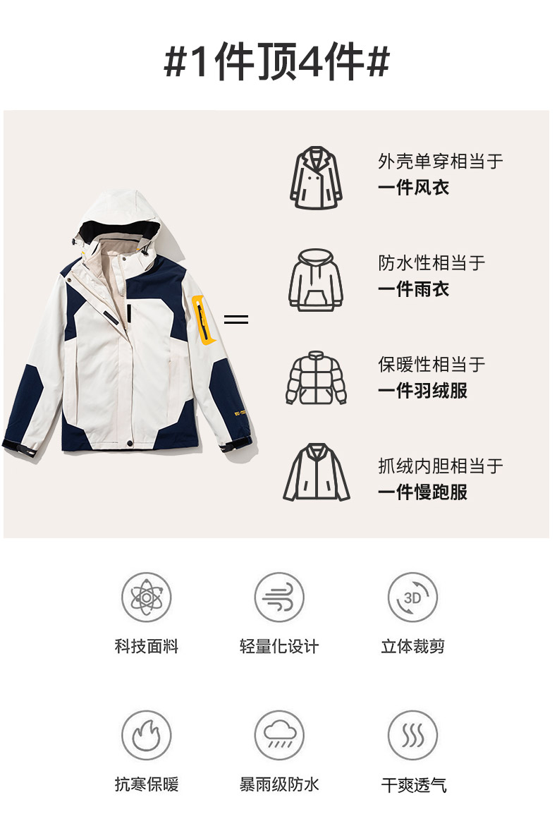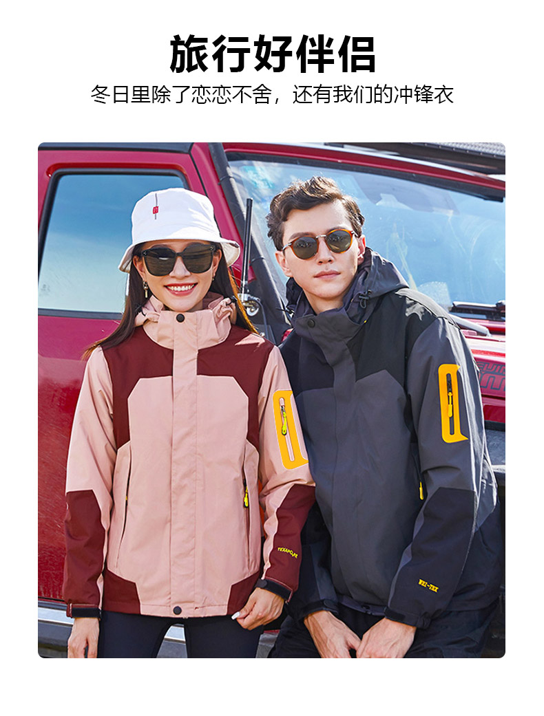 【五色可选】怪兽日记情侣款三合一冲锋衣 多功能 防水防刮 可拆卸内胆 D52-522