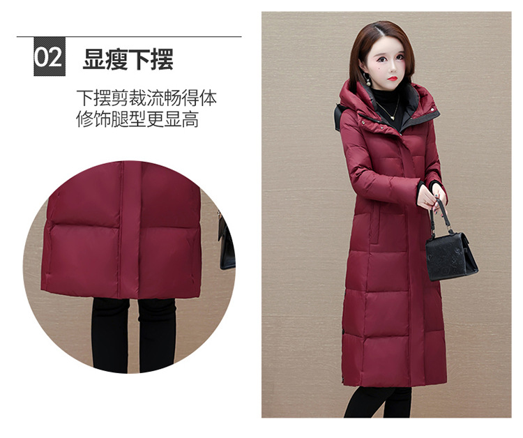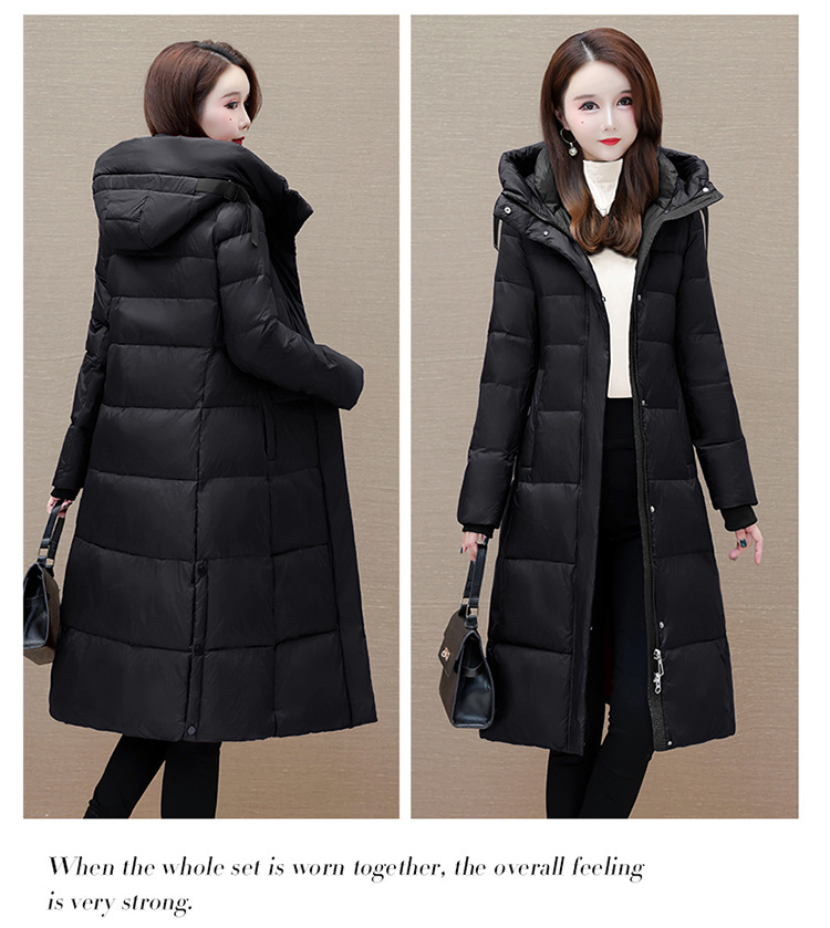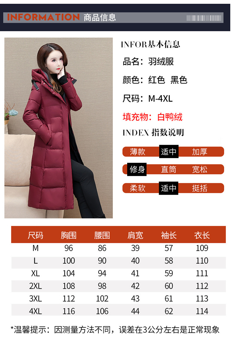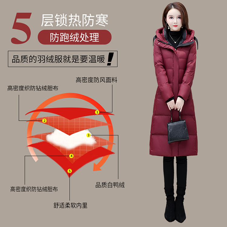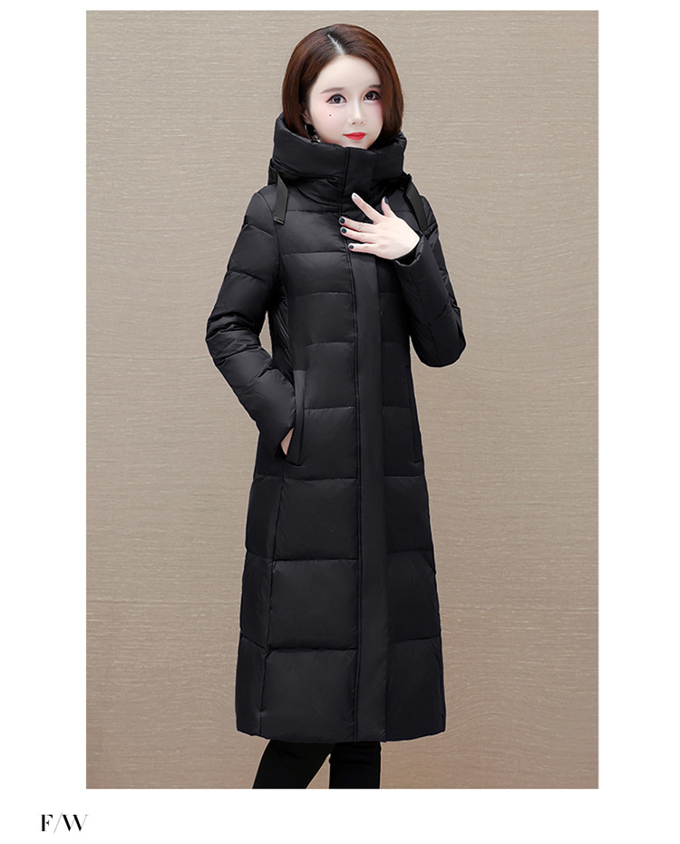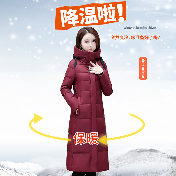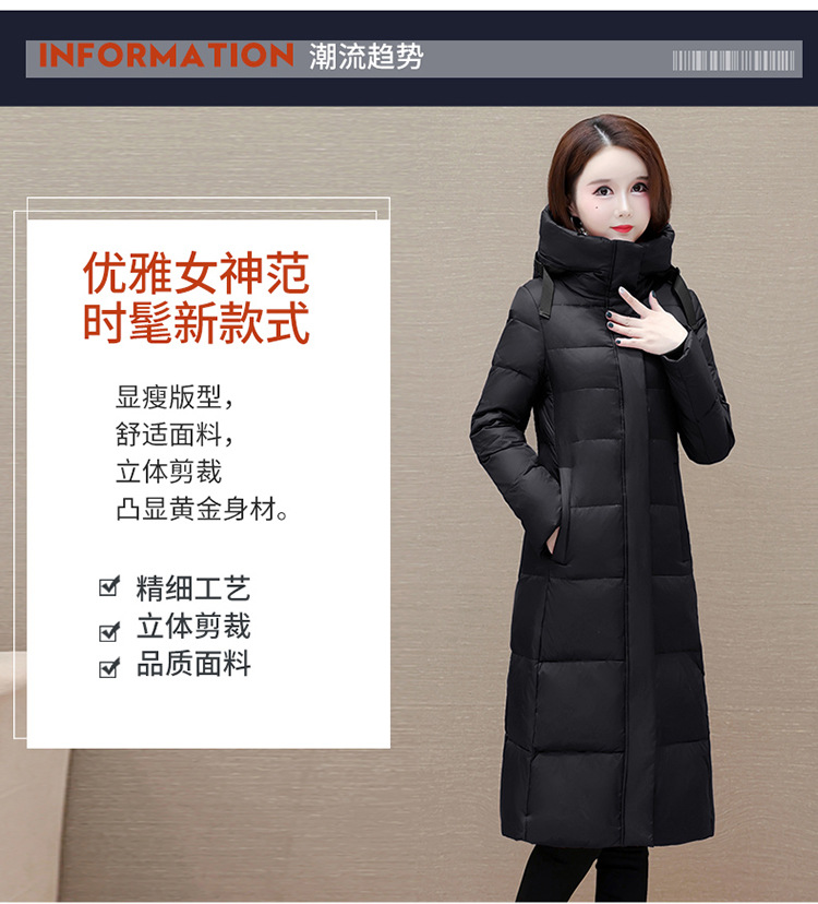 冬季长款白鸭绒羽绒服,连帽保暖过膝加绒冬装羽绒服外套QYM-JJ-MD23B117-Y