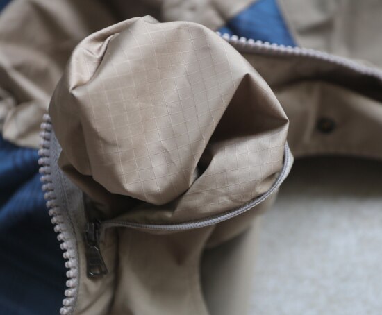 大身的蓝色格布 可轻度防泼水 外层和内袖筒 防水性都极佳