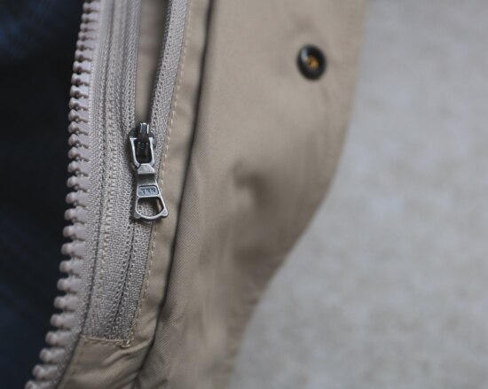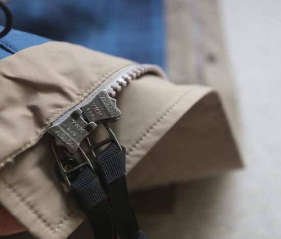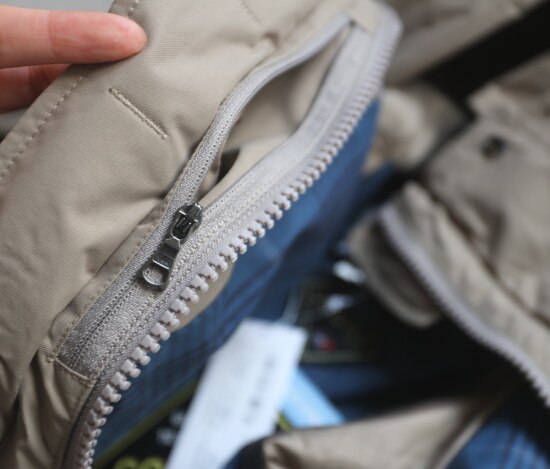 前襟里层 双开拉链头 YKK Vision系列 采用树脂齿牙 轻量化 也更抗折裂