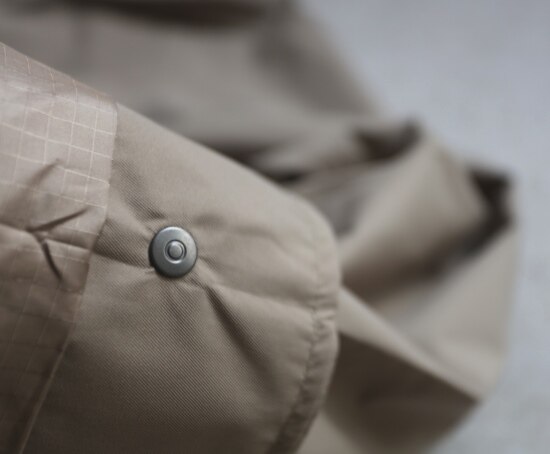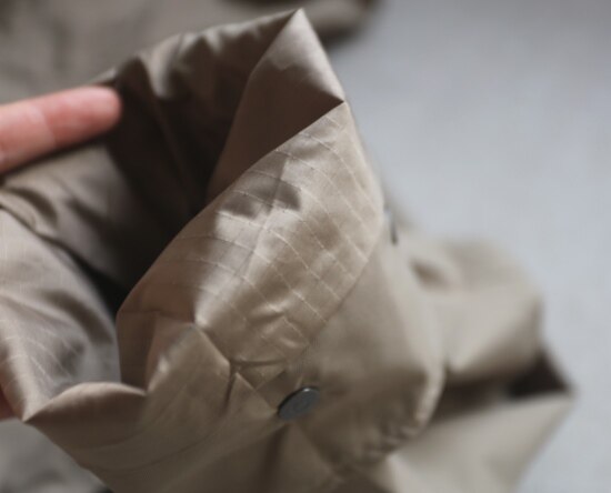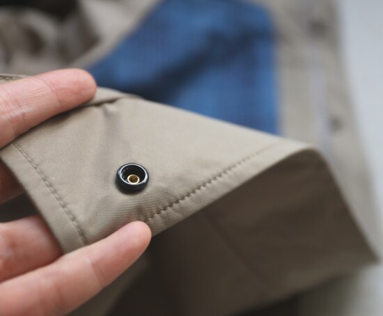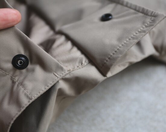 前襟 外层按扣 每个扣扣都有一段独立的垫布 这是方便 单手按扣的小巧思