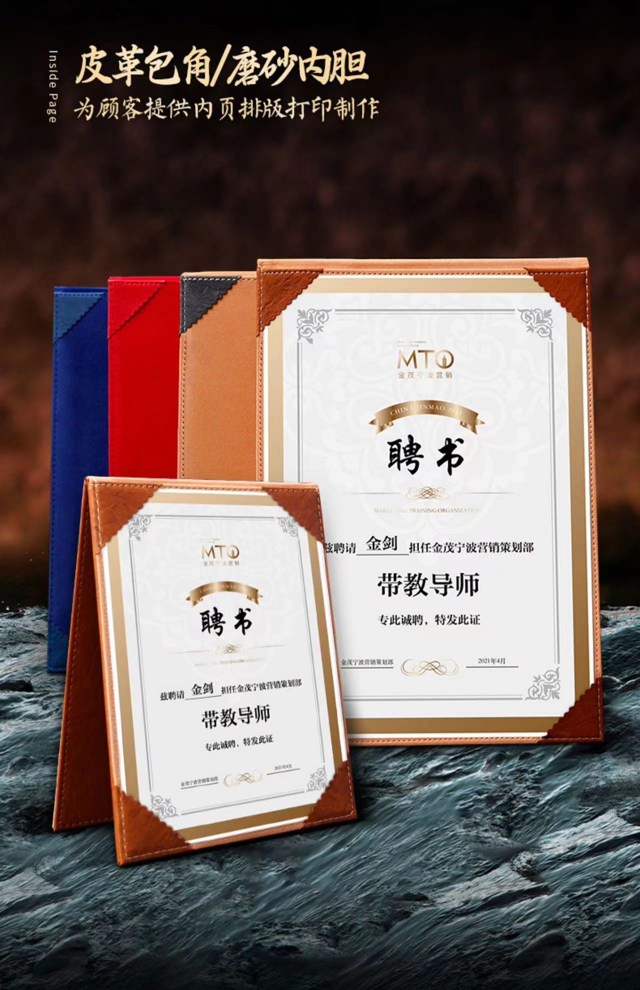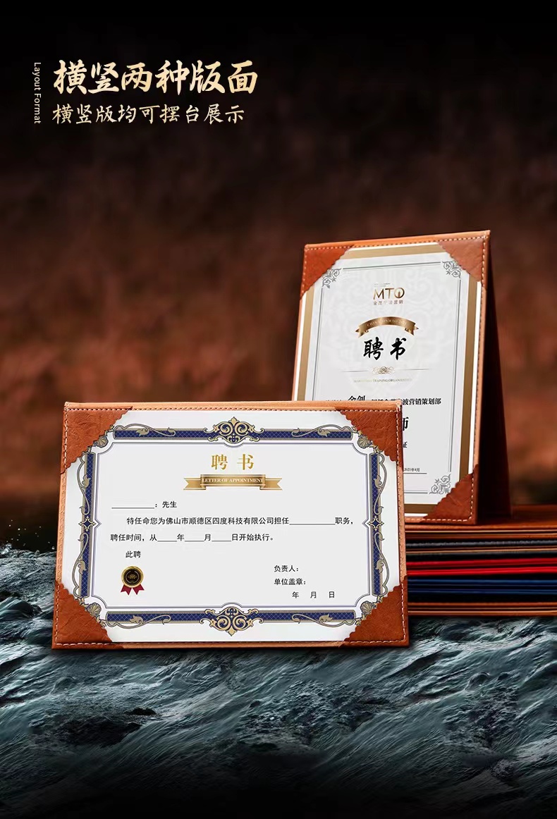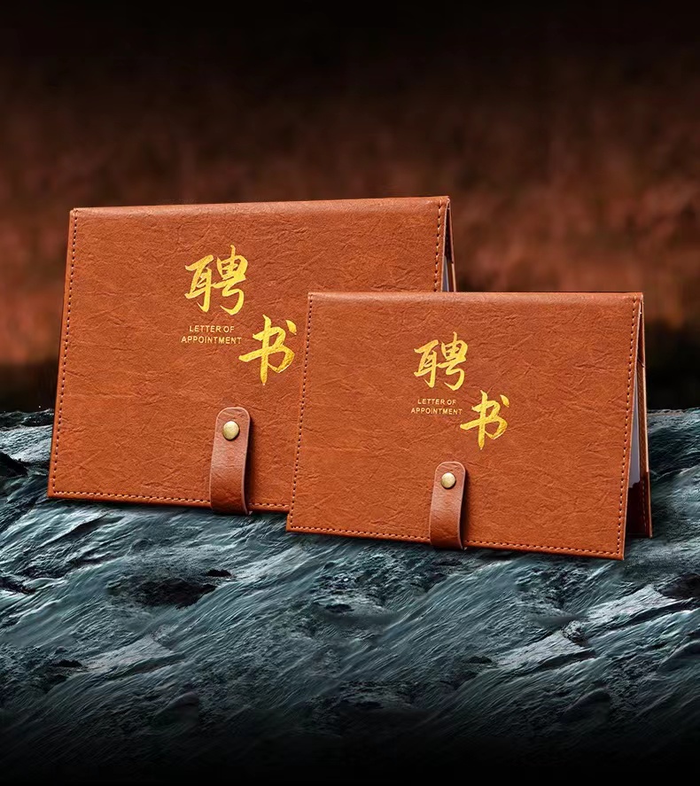 A4聘书定制定做高档复古皮革烫金创意封套任命书打印企业社团学院学生会干部聘书