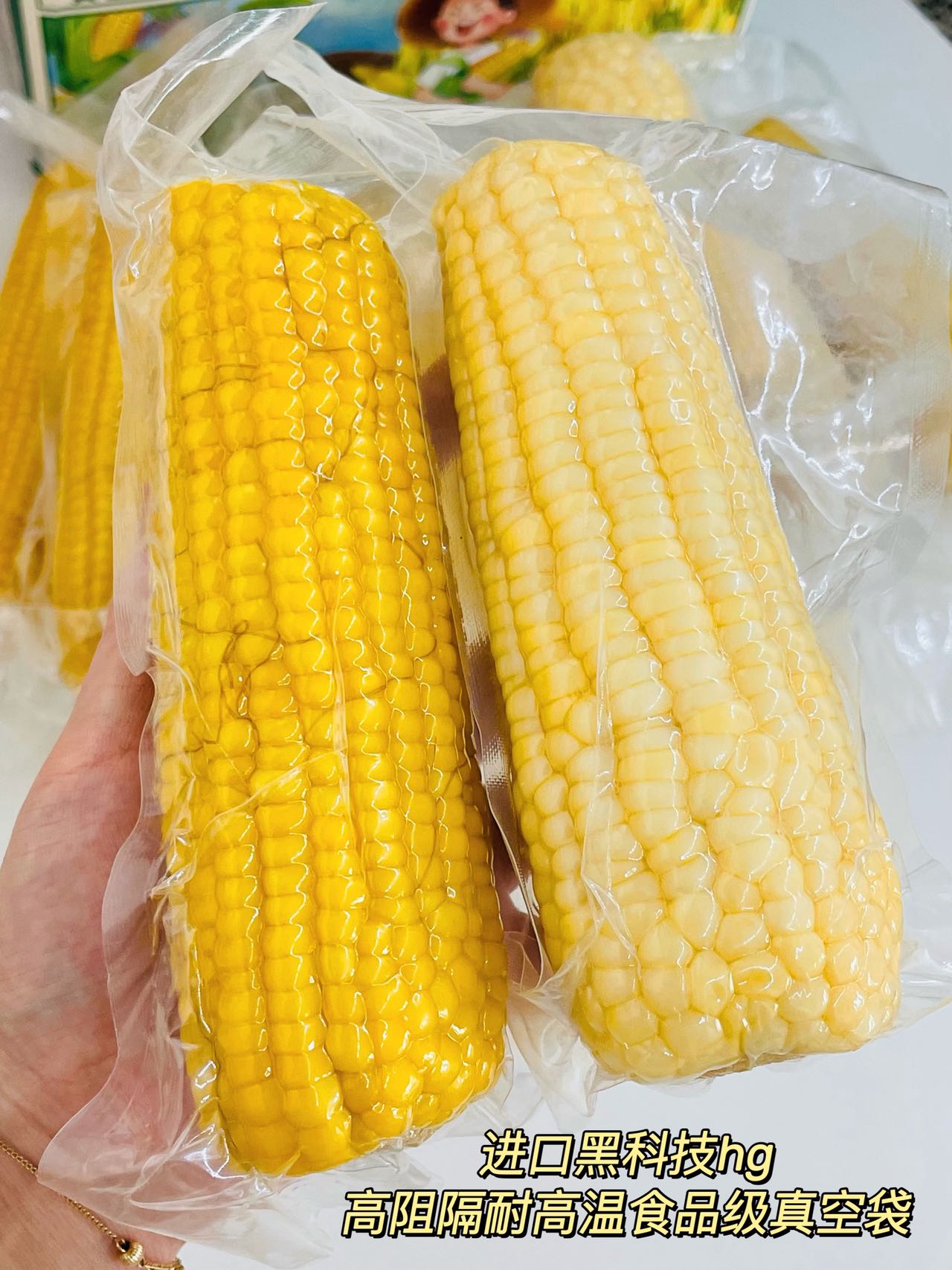 我们的真空玉米袋子采用,高阻隔,透氧率高,防紫外线能力强,可以让玉米时隔一年以后吃口感还和刚生产的玉米一样好吃