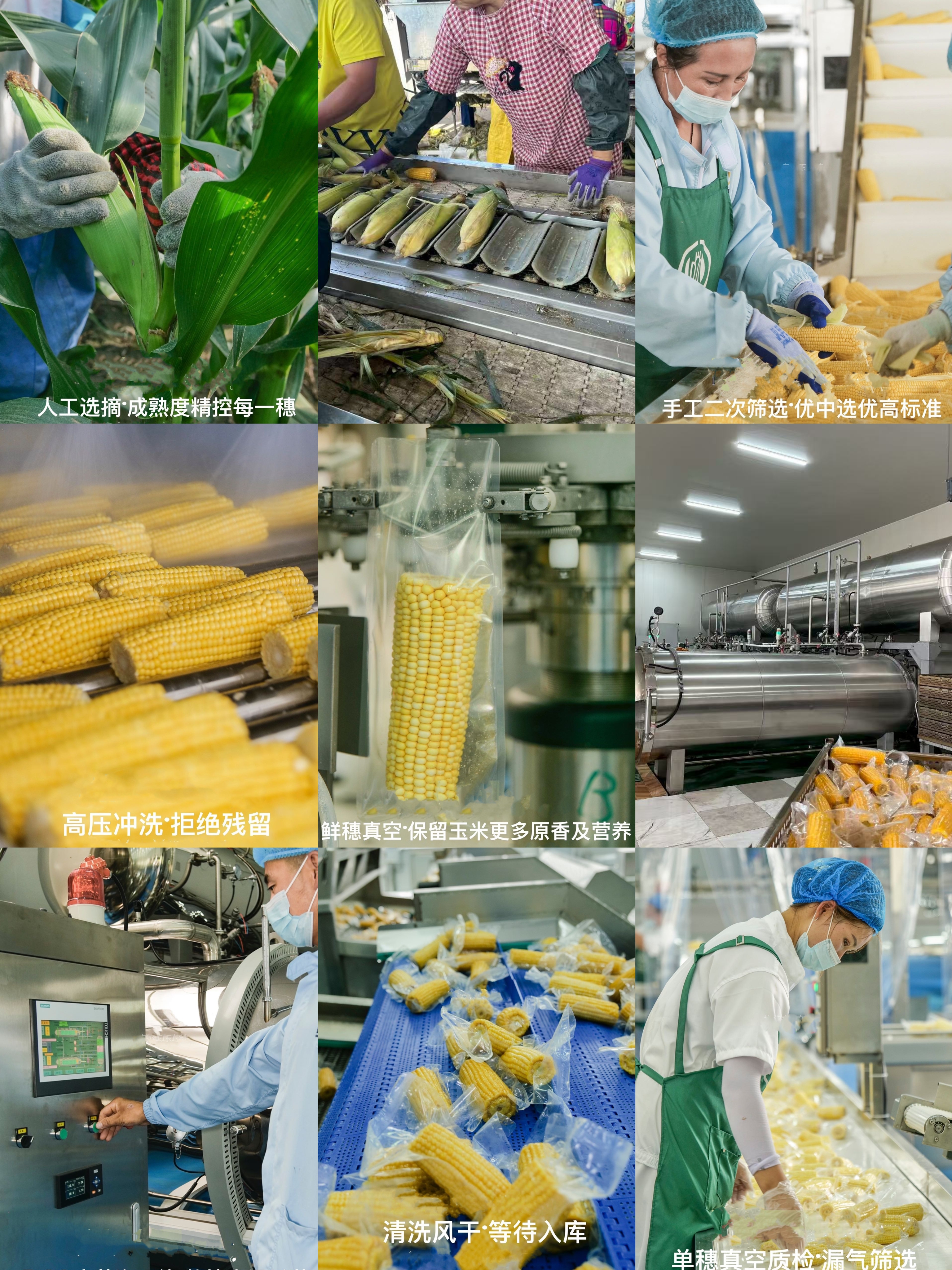 一年一季、一株一穗 100多天超长生长周期,只为吸收积累更多大自然的能量 优质黑土地,孕育优质玉米 我们再优中选优,清晨采摘,20次纯净水清洗、130度高温杀菌,4小时速冻锁鲜 食品级真空包装,争分夺秒保留住玉米的鲜香和营养