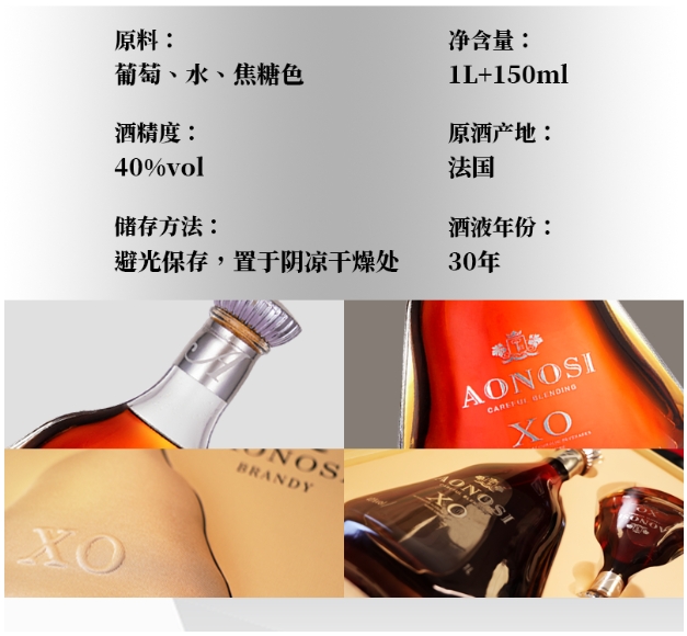 【赠试喝装】法国进口A. E. Dor爱德华酒庄·奥诺斯AONOSI白兰地XO 1L装/瓶+赠150ml试喝装
