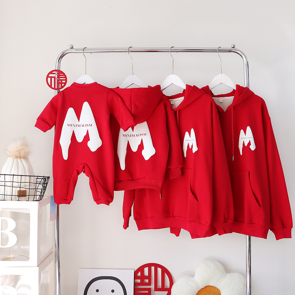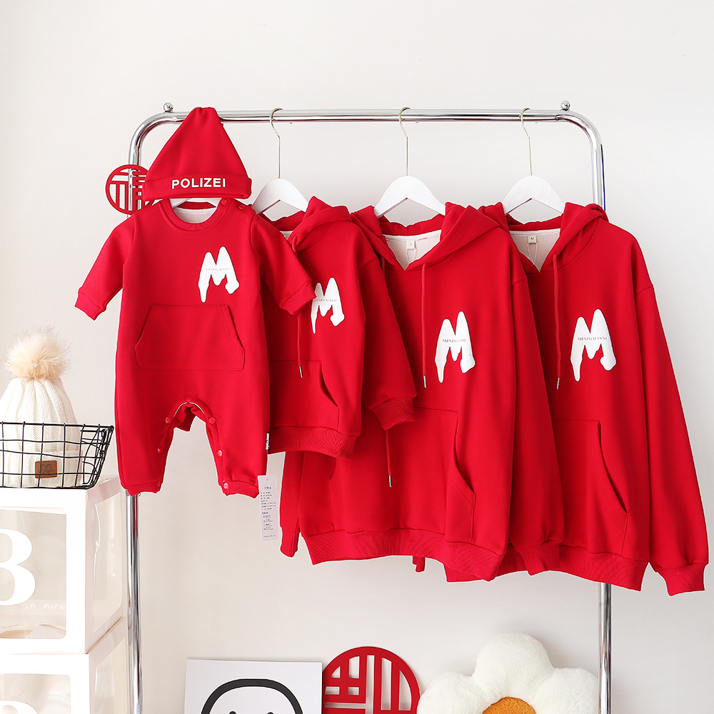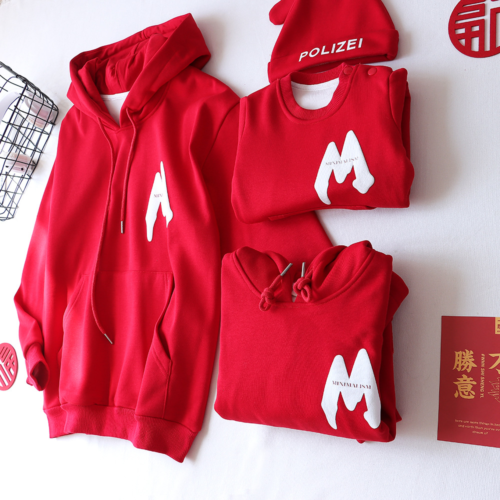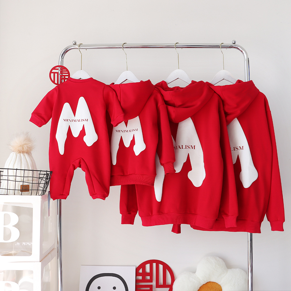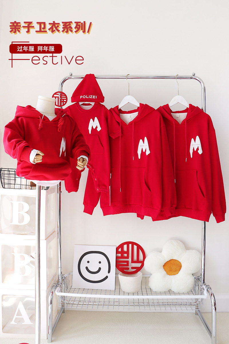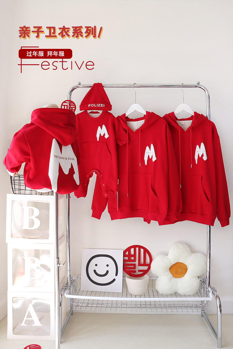 【亲子卫衣系列拜年服 像被窝一样暖 这个冬天全家一起快乐】抖音亲子装2023兔年本命年拜年服红一家三四口全家福母女母子婴儿