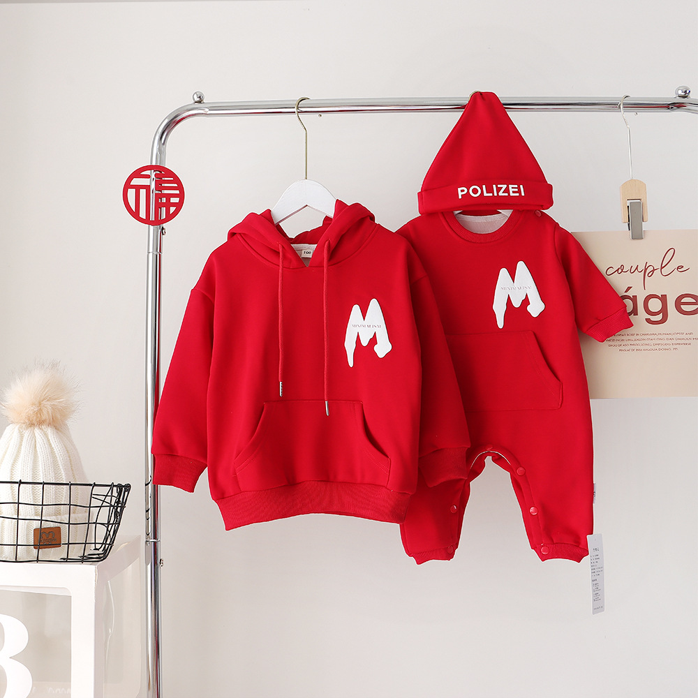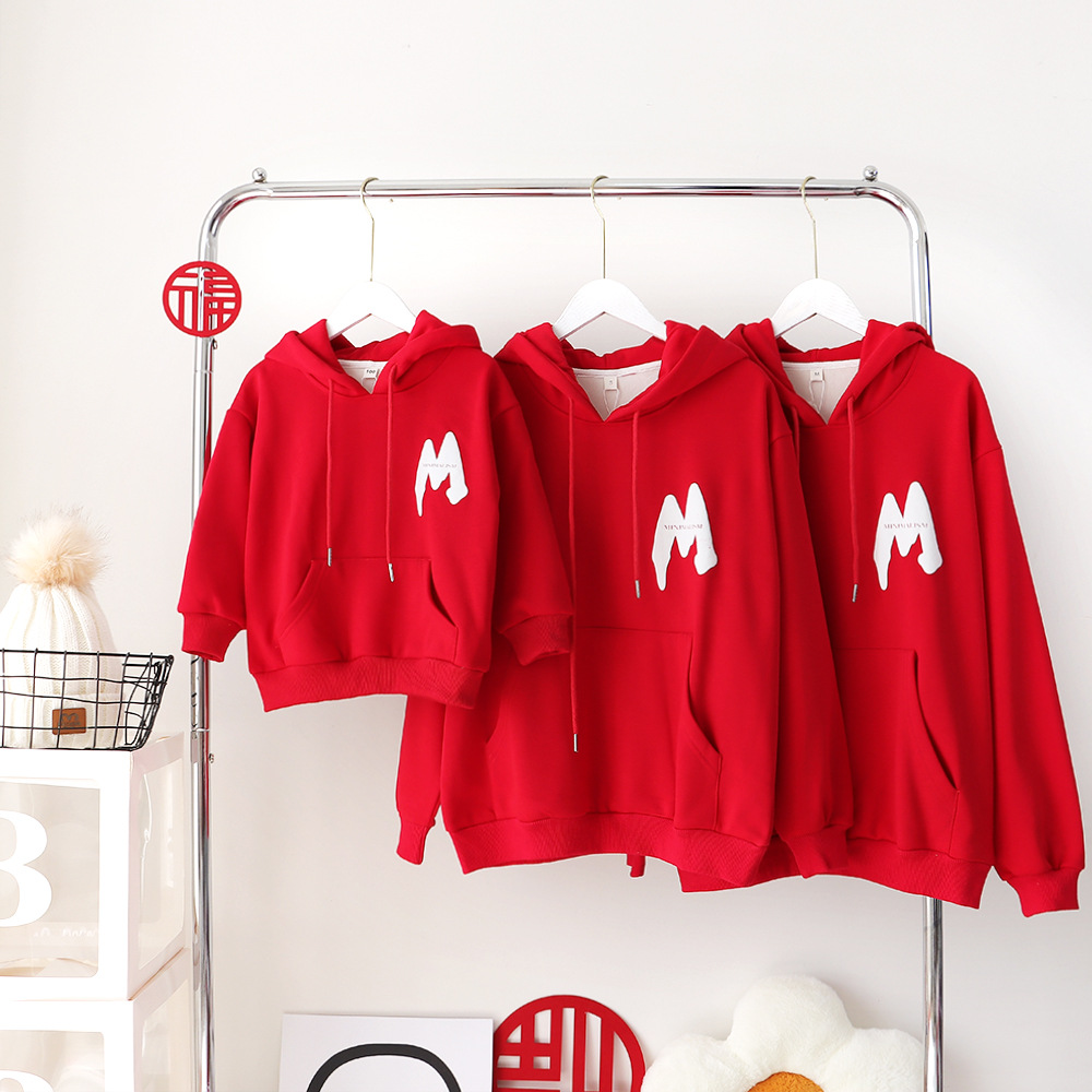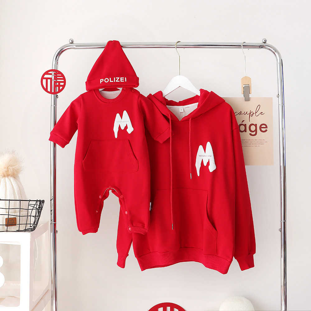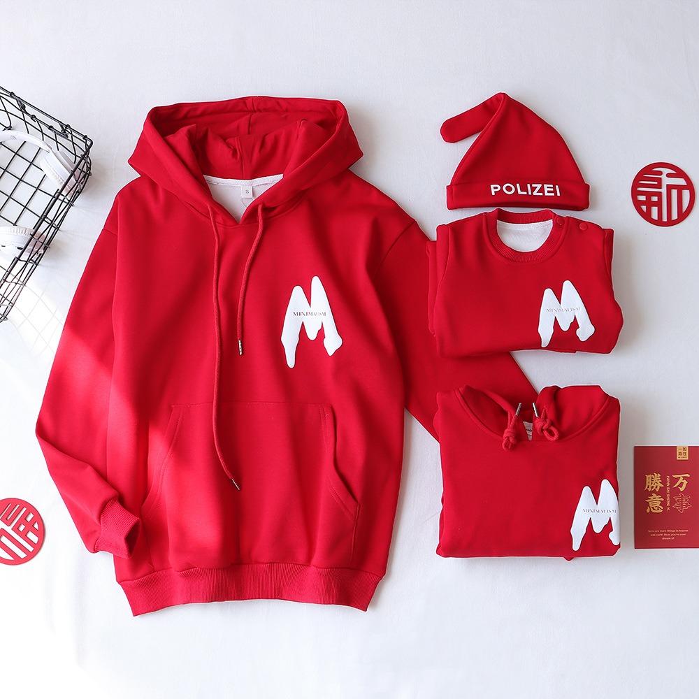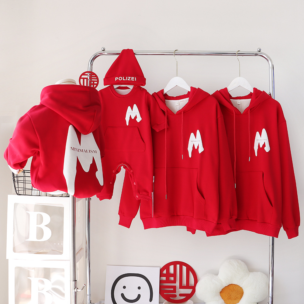 【亲子卫衣系列拜年服 像被窝一样暖 这个冬天全家一起快乐】抖音亲子装2023兔年本命年拜年服红一家三四口全家福母女母子婴儿