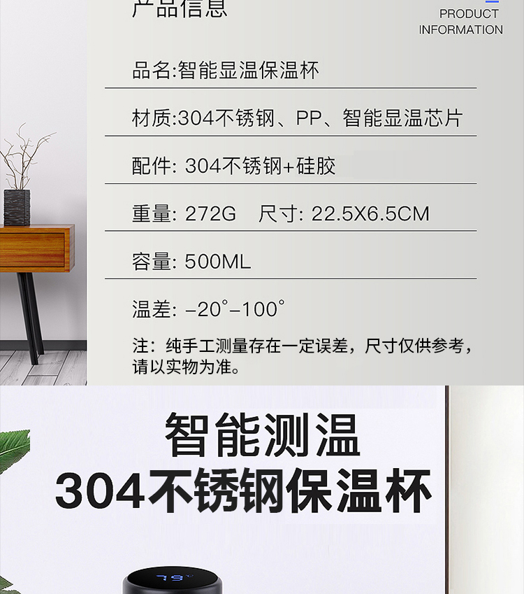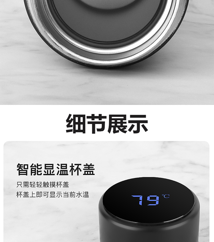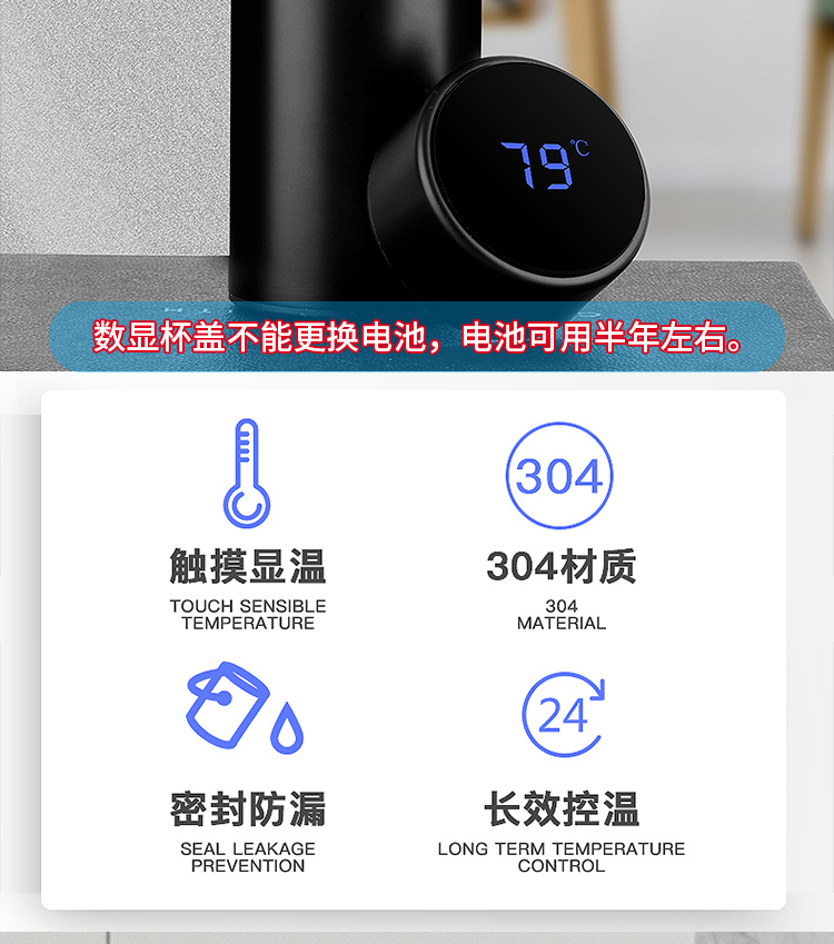 传枫 304不锈钢数显冷暖保温杯触摸LED液晶显示温度水杯热水杯商务杯 CF-605