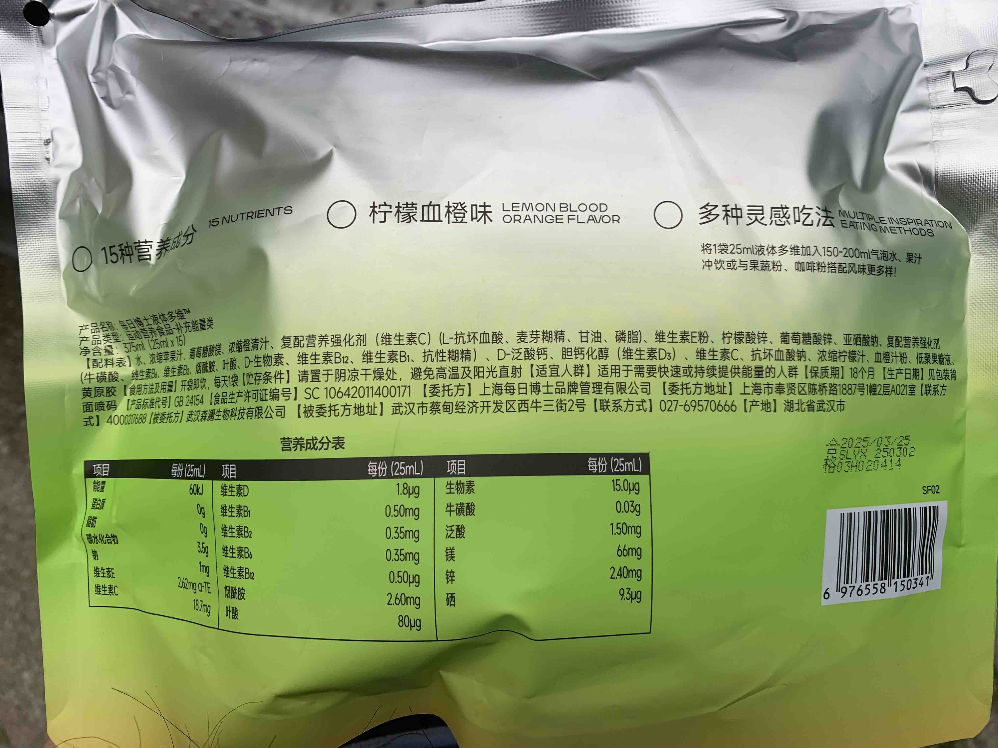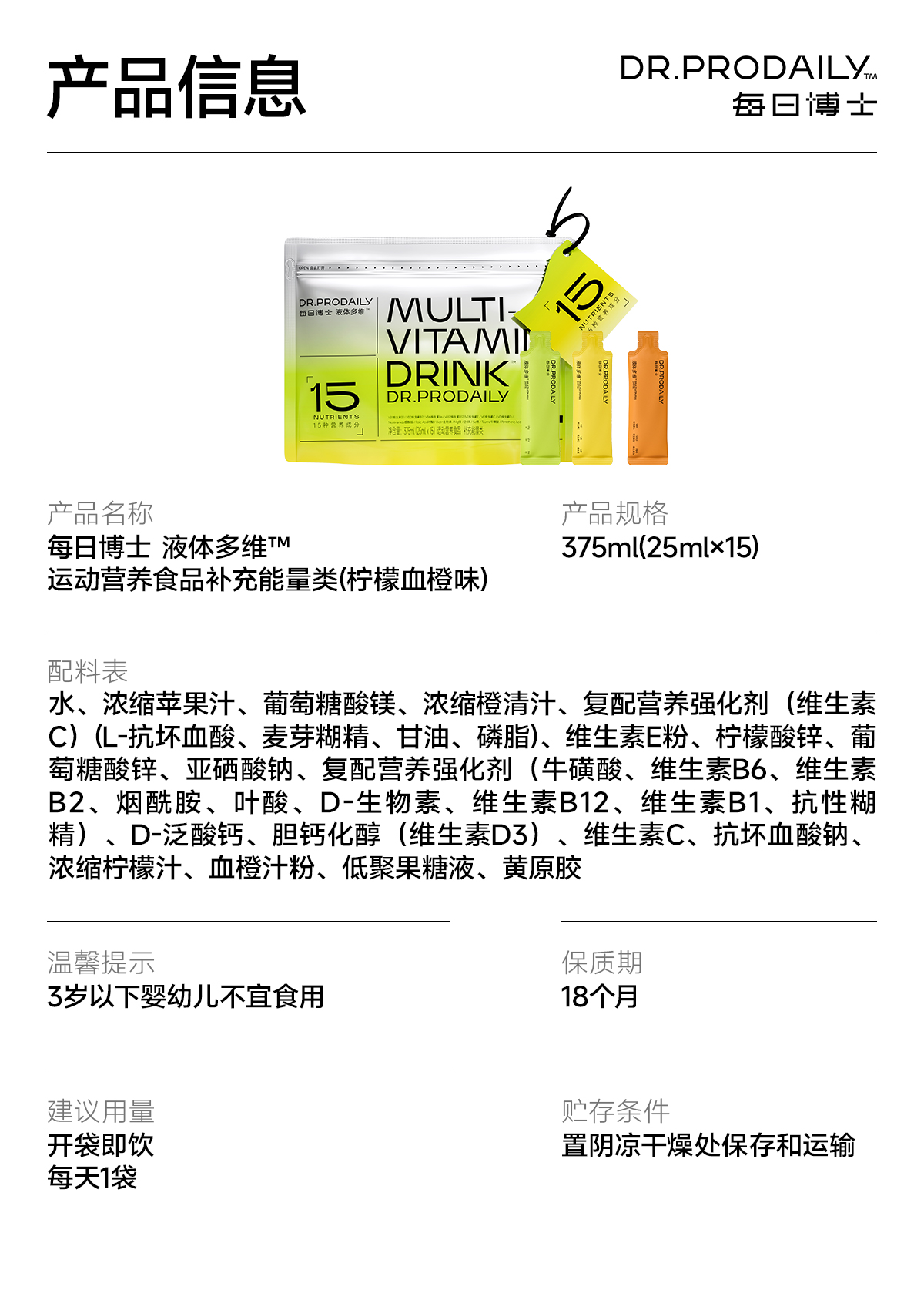 ⁵【液体多维】一口喝下15种维生素矿物质+ 叶酸+烟酰胺 柠檬血橙味 一包15袋【每日博士】YY05-QTT-SA