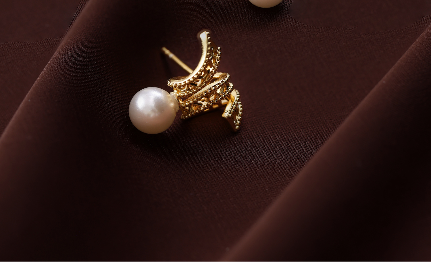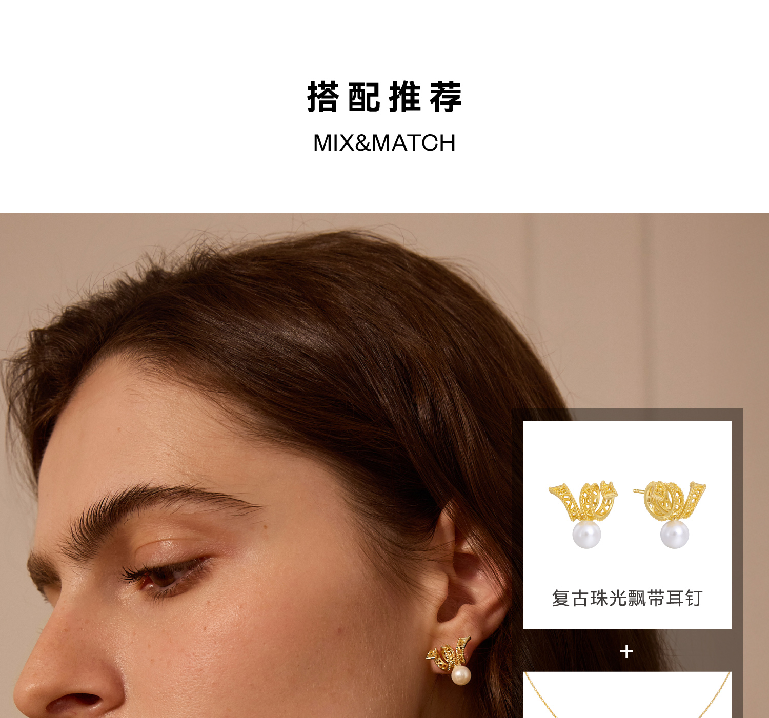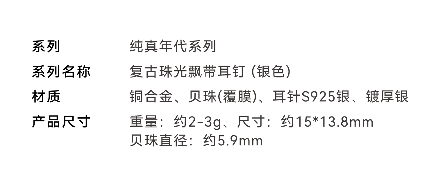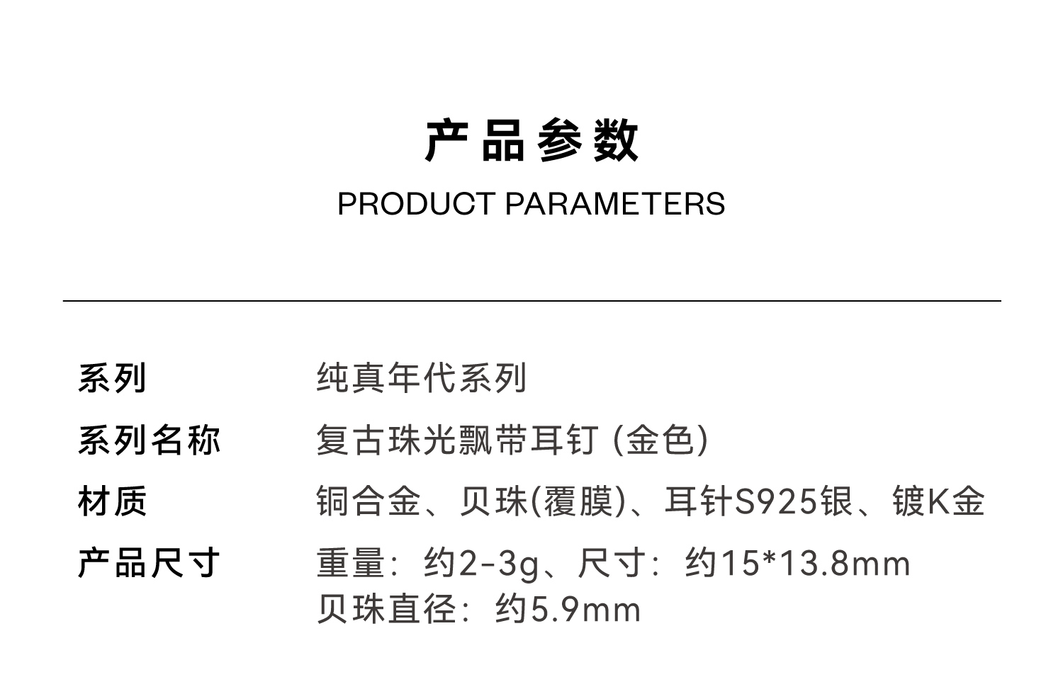 ARSIS|纯真年代系列 复古珠光飘带耳钉