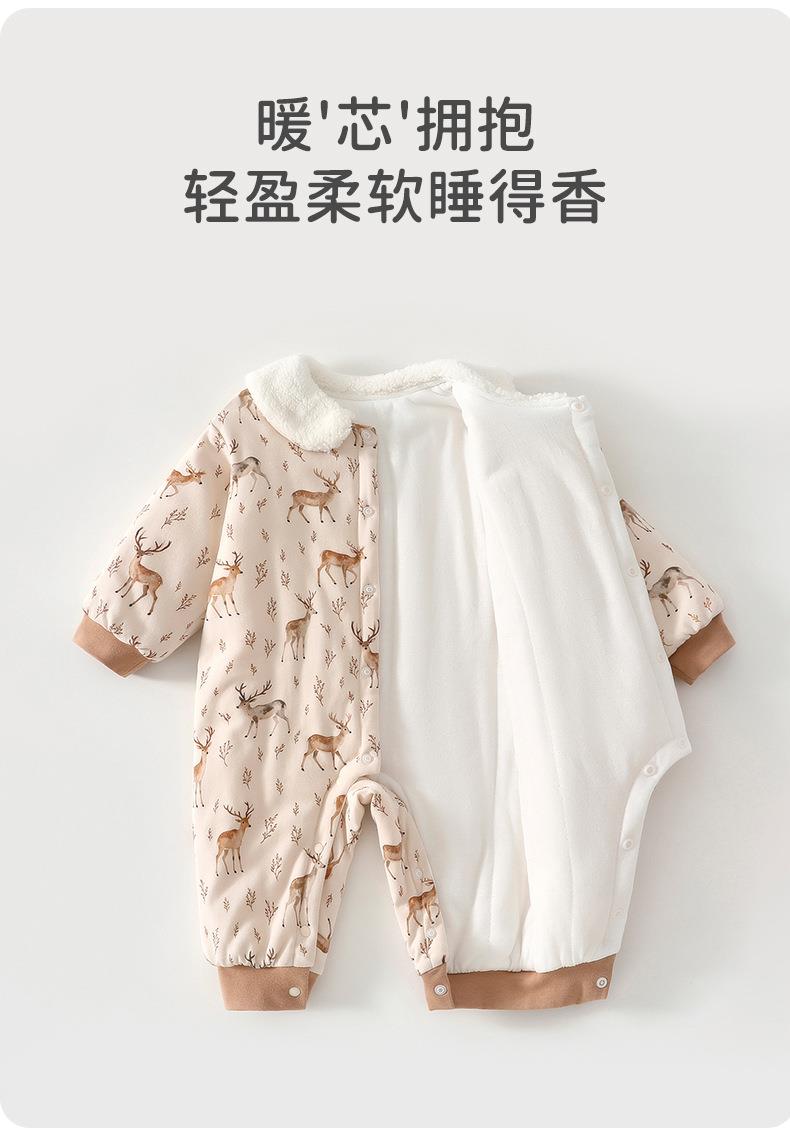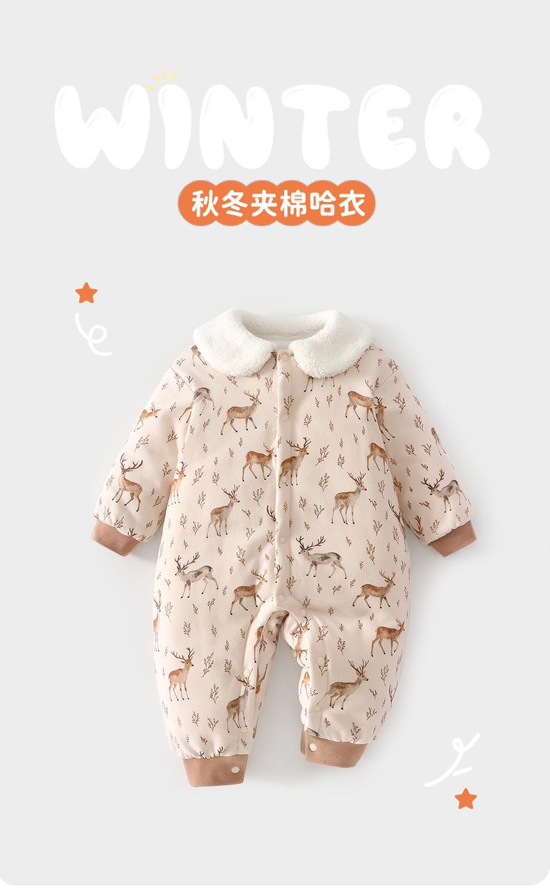 婴儿连体衣长袖冬季款女宝宝婴幼儿休闲风连体衣80克夹棉加厚