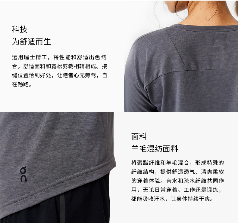 On昂跑Comfort Long-T速干跑步运动休闲长袖T恤女春秋宽松版