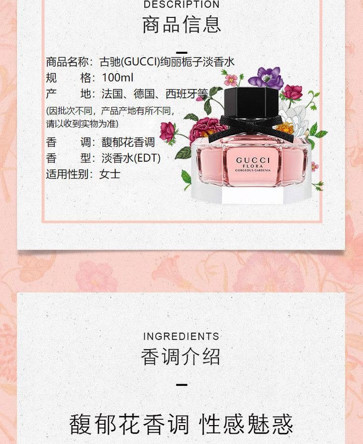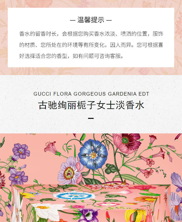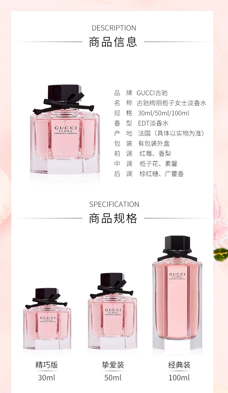 1LPY 古驰(GUCCI)栀子花香水女士经典EDT自然清香淡香水绚丽栀子花