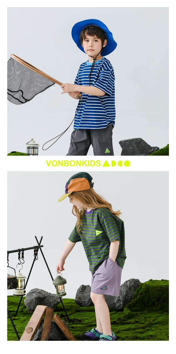 vonbonkids 山系撞色纯棉彩条短袖T恤 S07C26016