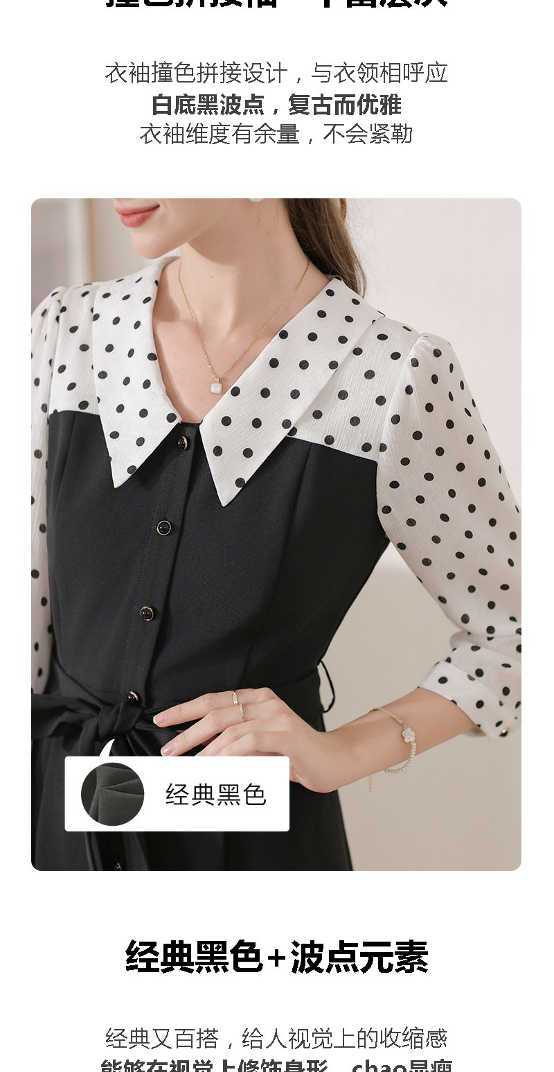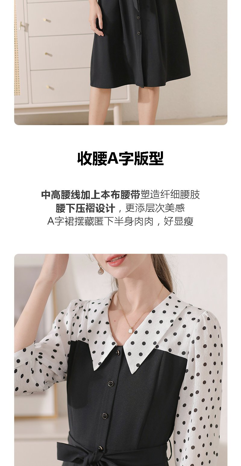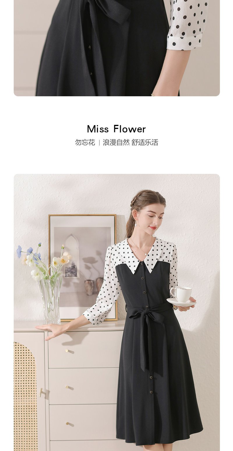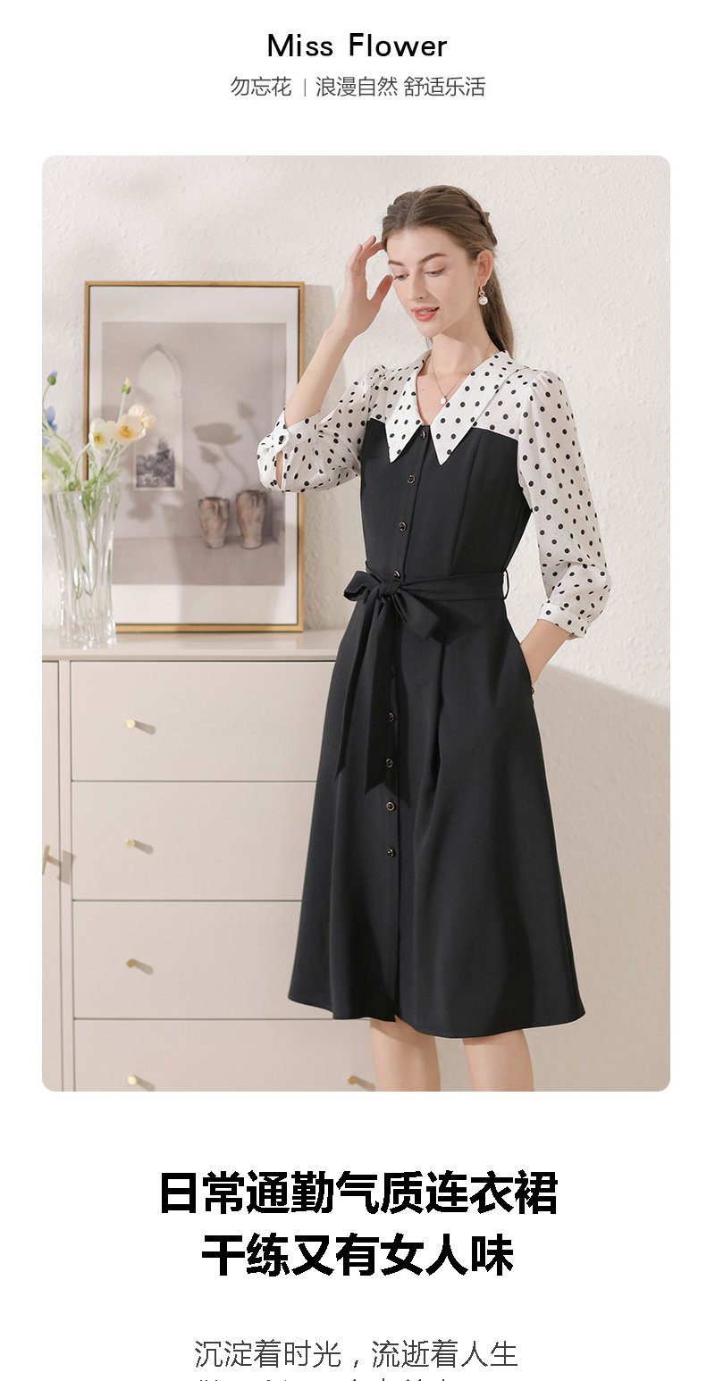 勿忘花黑色气质拼接时尚连衣裙女2024秋季新款假两件收腰显瘦裙子