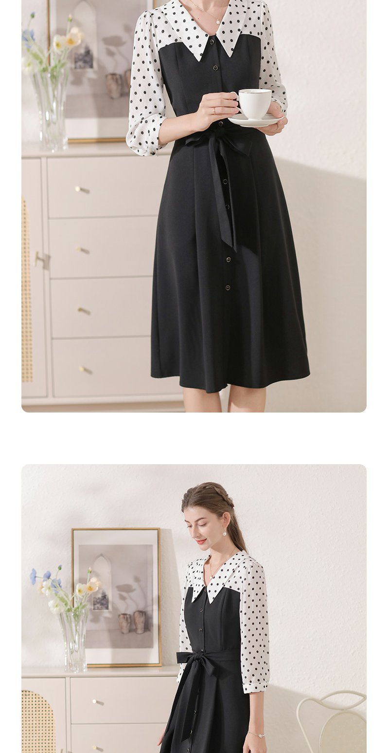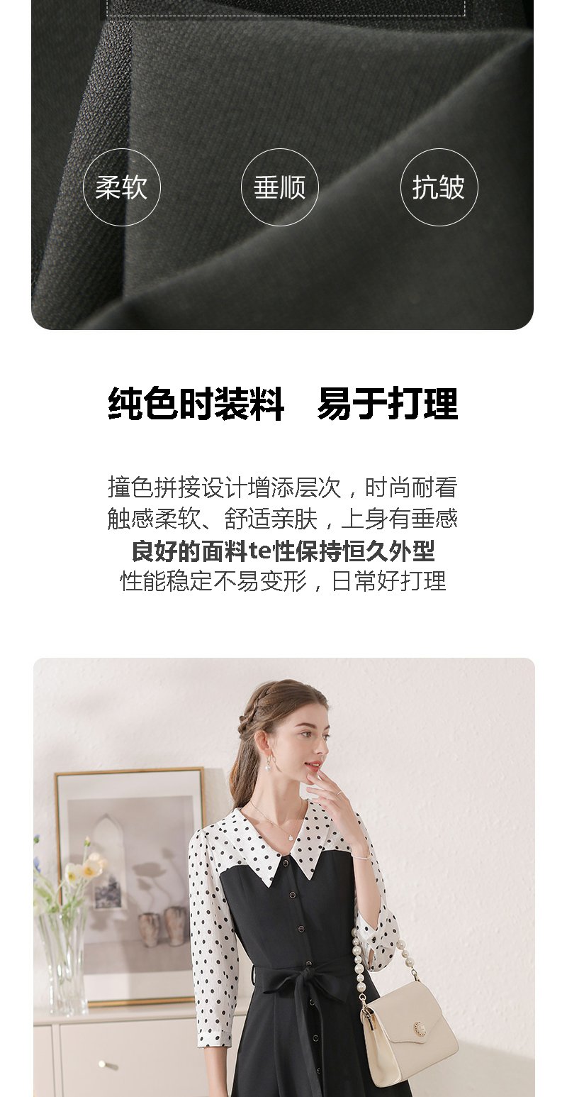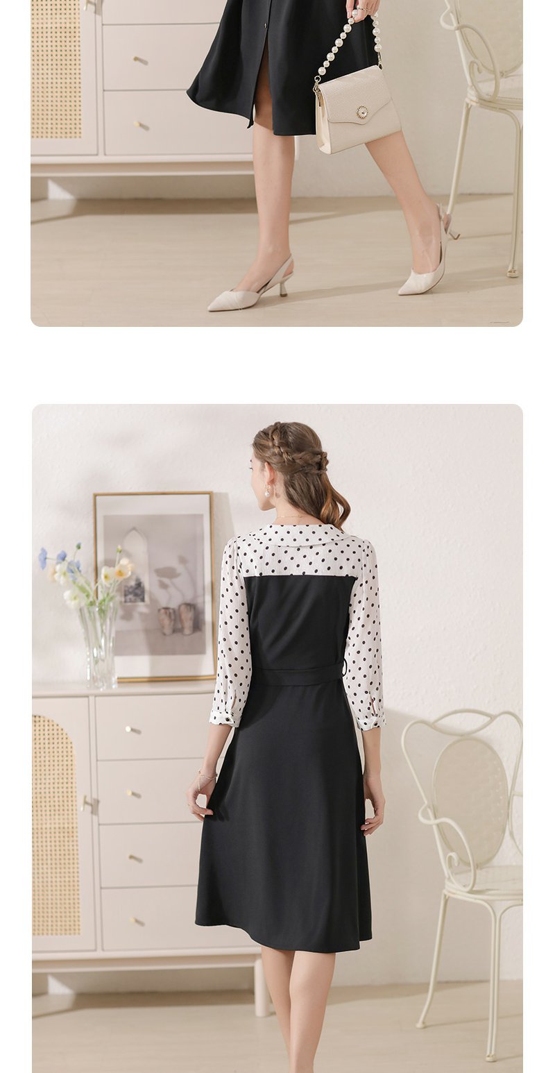 勿忘花黑色气质拼接时尚连衣裙女2024秋季新款假两件收腰显瘦裙子