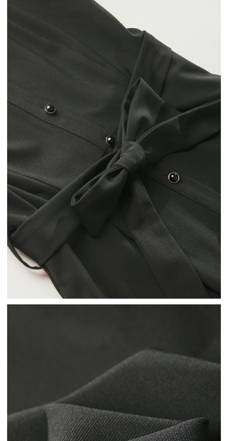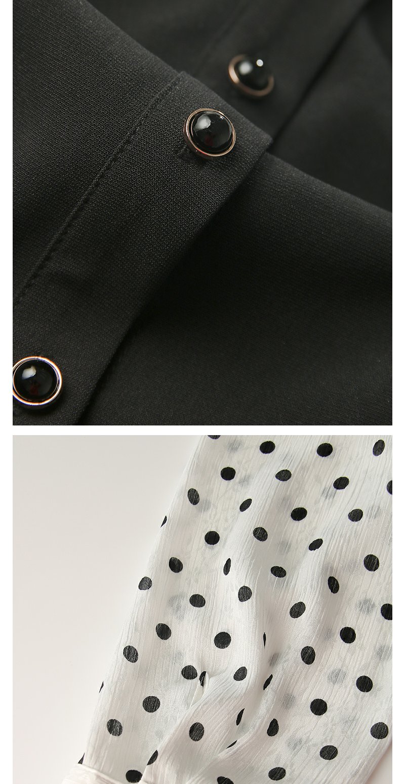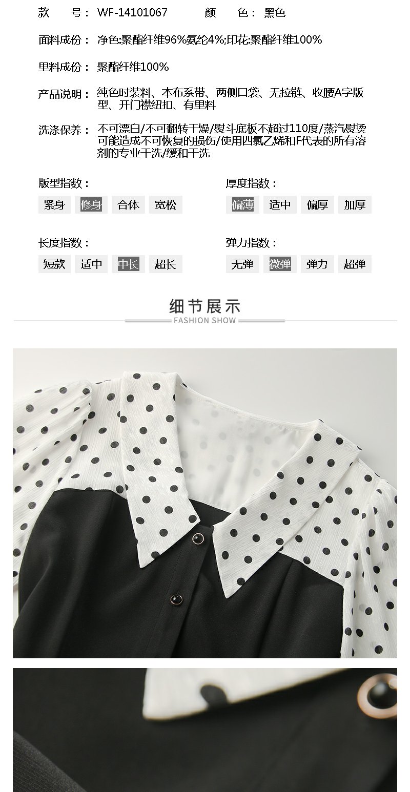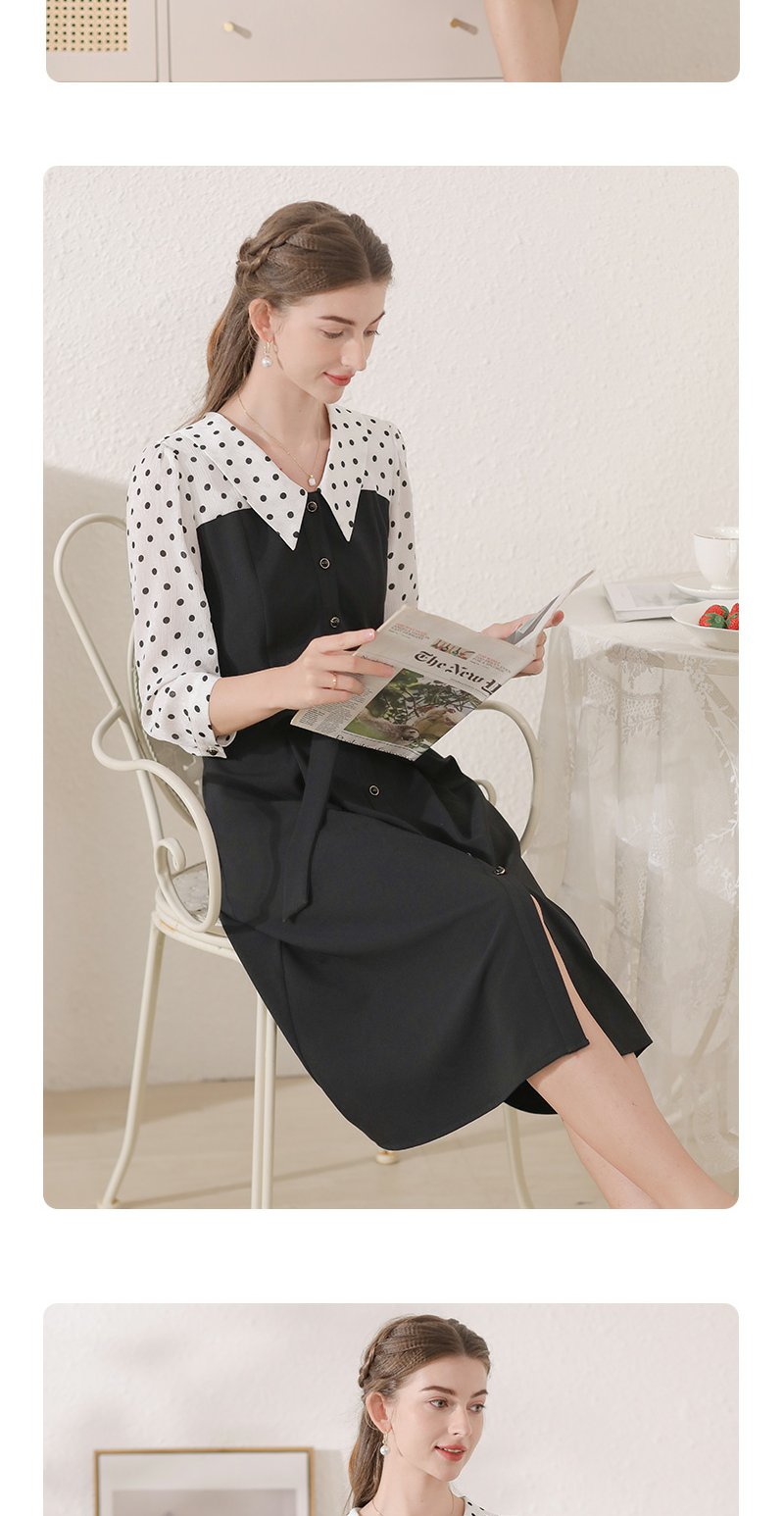 勿忘花黑色气质拼接时尚连衣裙女2024秋季新款假两件收腰显瘦裙子