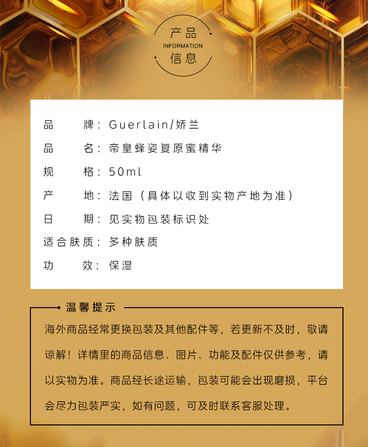娇兰 帝皇蜂姿黄金修护第四代复原蜜 弹润紧致面部精华~ 50ml GUERLAIN /guerlain