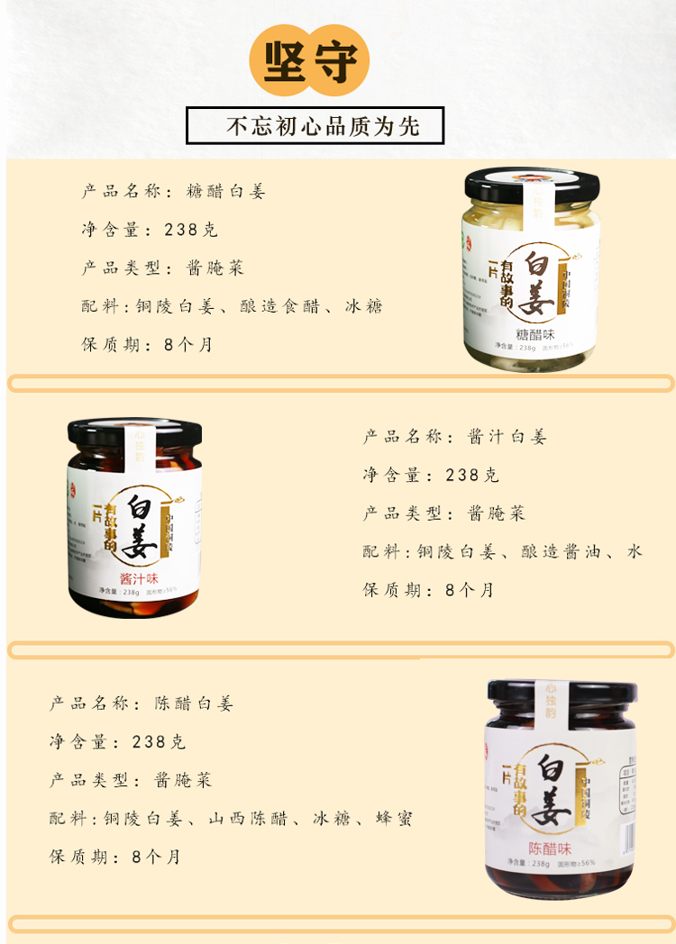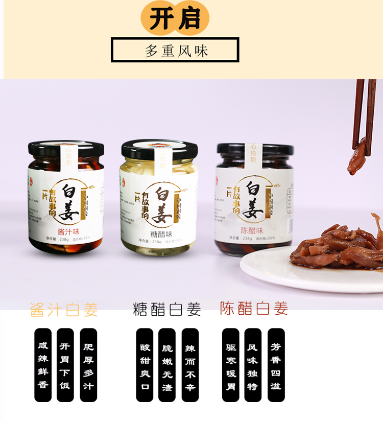 【小来】特价到手3瓶❗️铜陵白姜 糖醋白姜酸甜生姜酱汁咸生姜泡菜姜片 238g/罐,每天三片醋泡姜 活到90不显老 酸甜可口