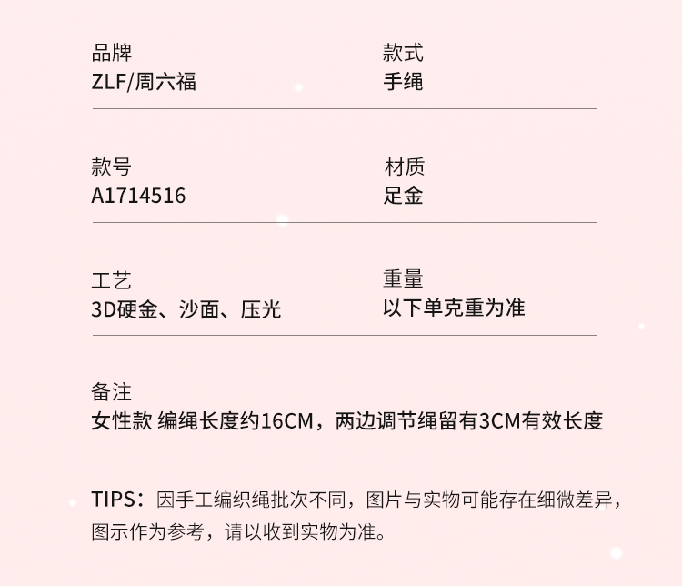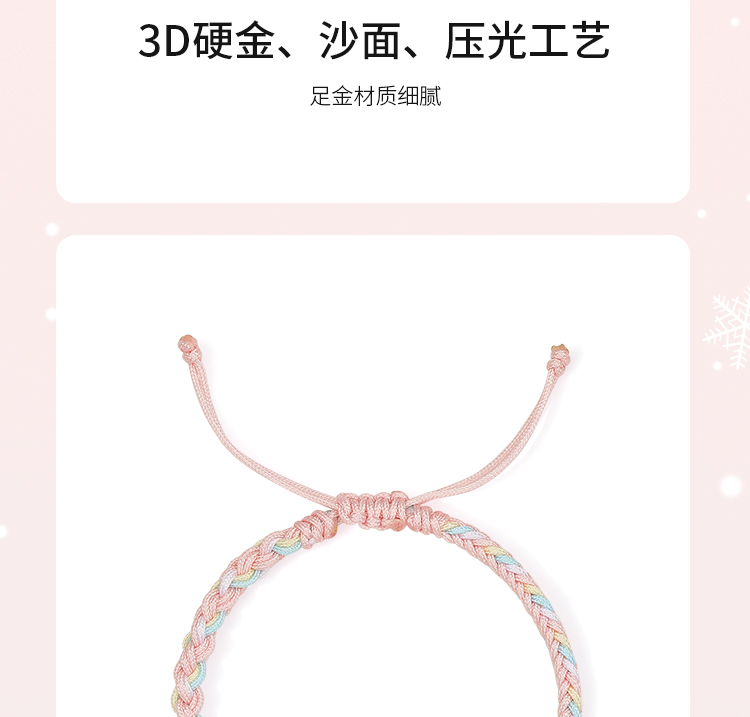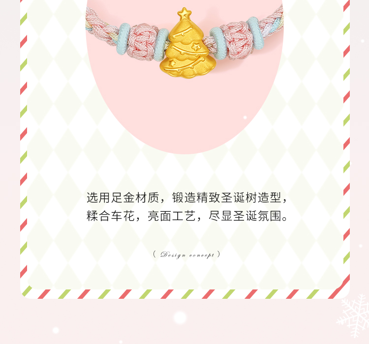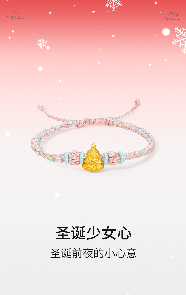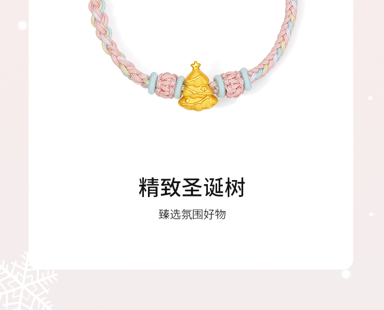 周六福黄金手绳女3d硬金圣诞少女心定价粉嫩圣诞树手绳圣诞节礼物