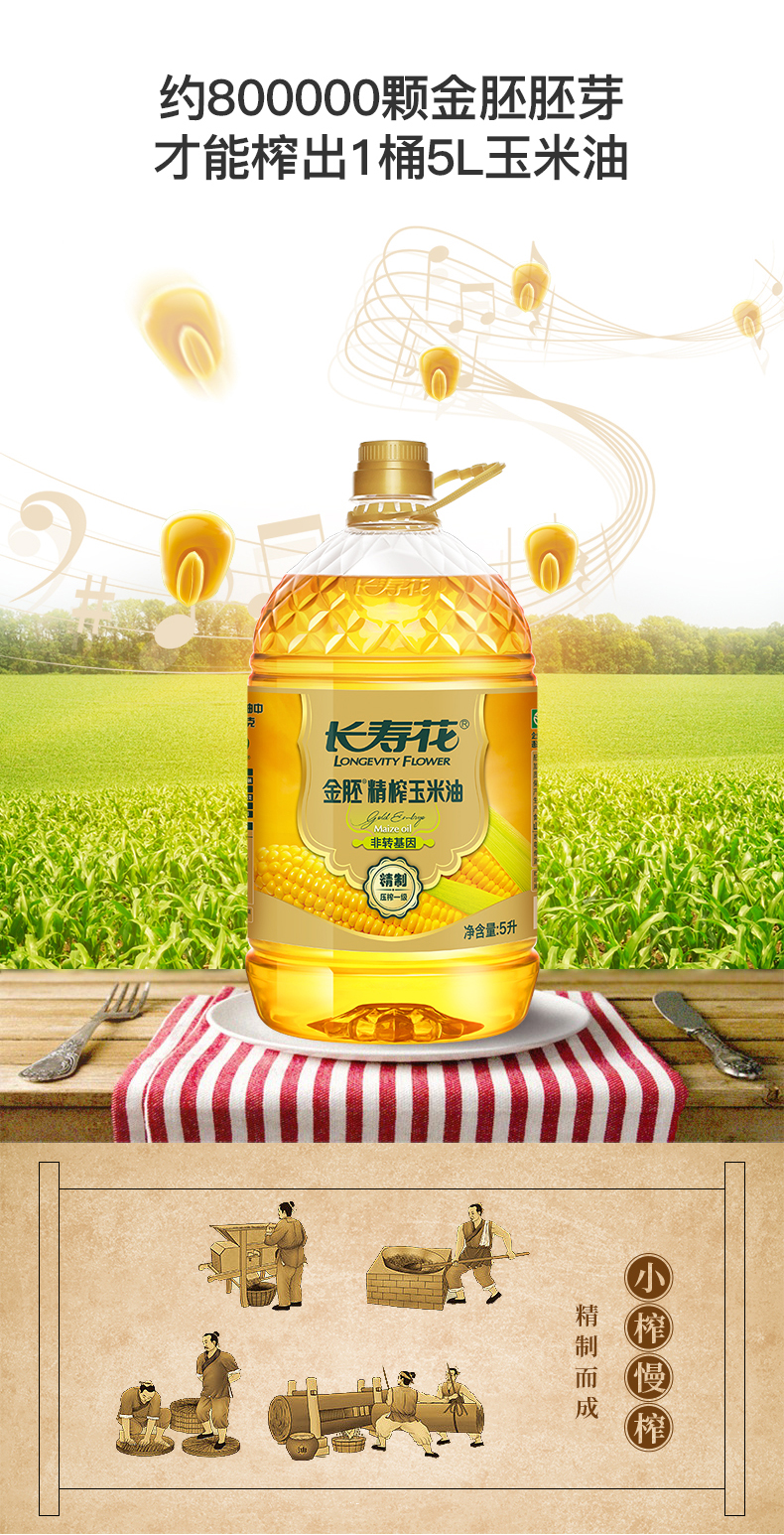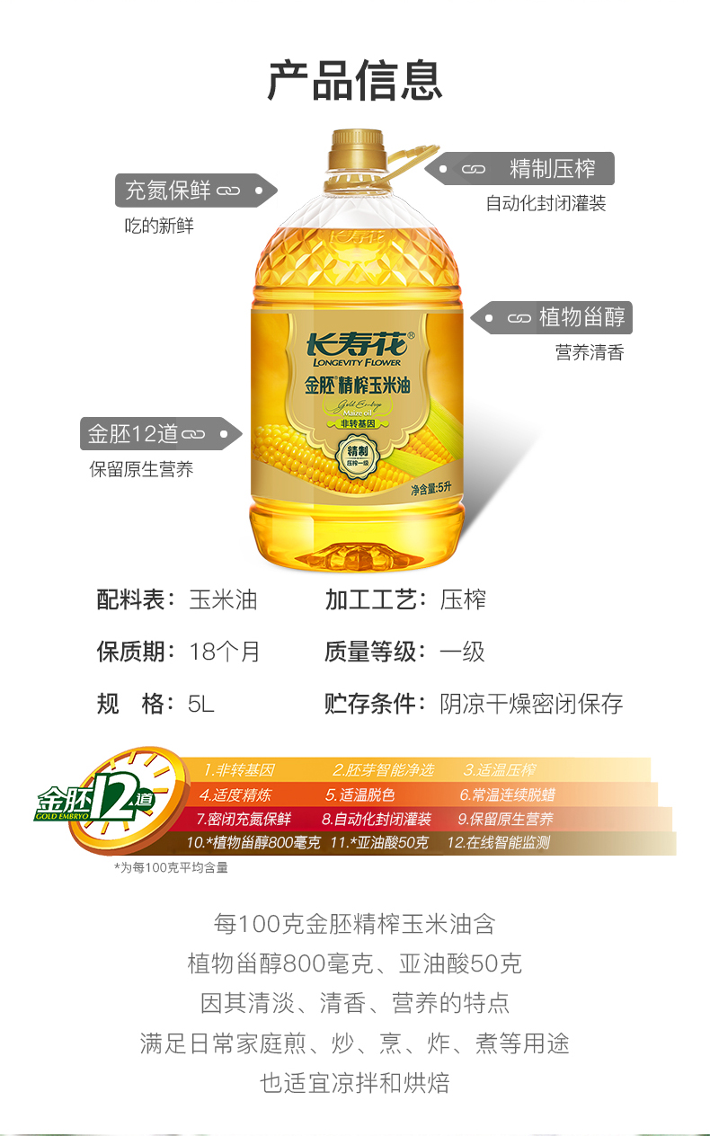 长寿花压榨玉米油5L*1桶非转基因物理压榨一级食用油烘焙油植物油