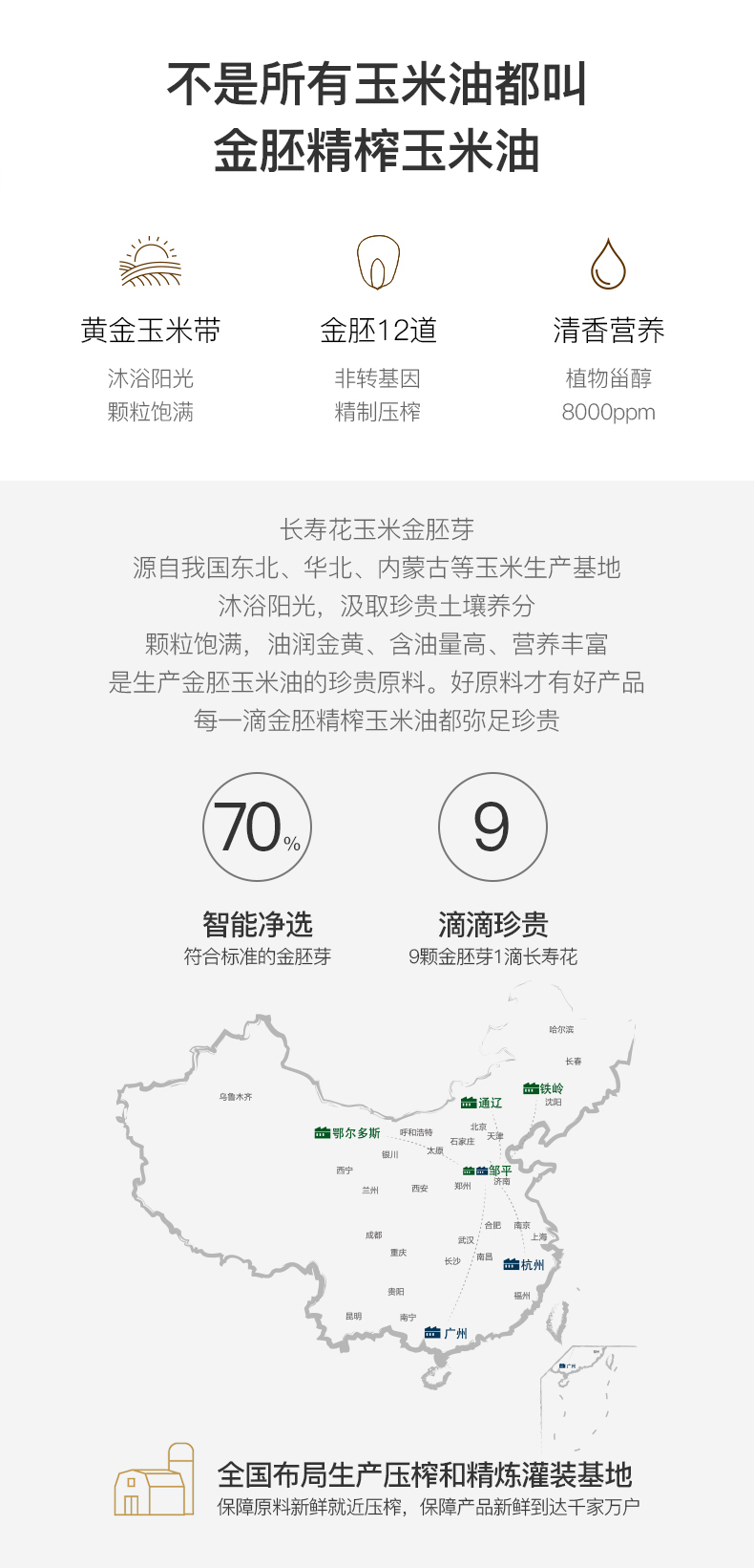 长寿花玉米油4L非转基因压榨一级玉米胚芽植物油食用油桶装