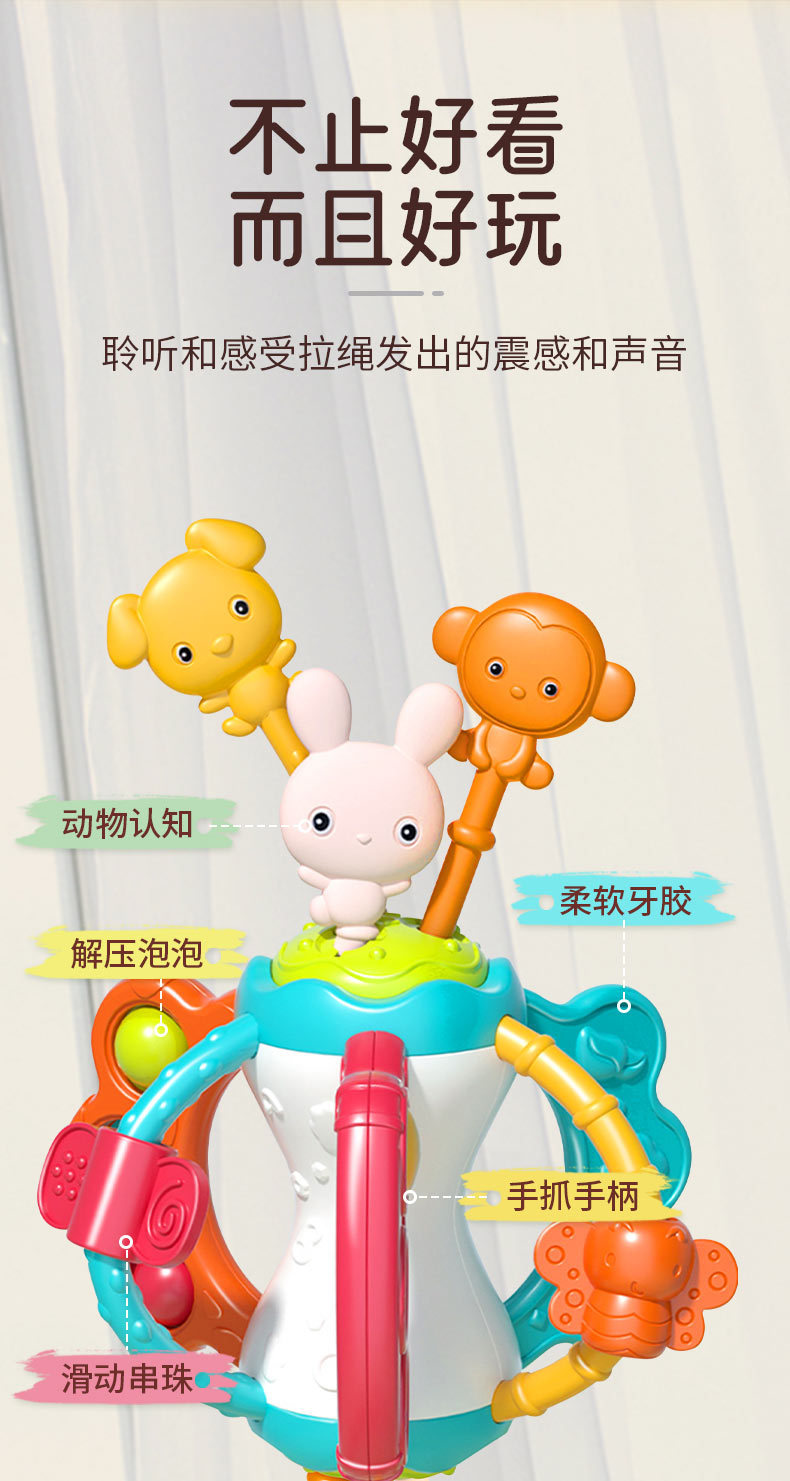 【升级款手抓球+抽拉乐】婴儿早教抽抽乐玩具 感官探索 可啃咬 还有指压球触感体验 每根绳子都有不同奥秘