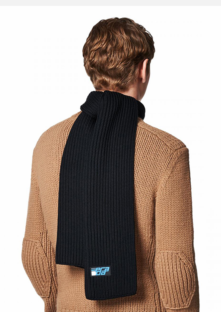 PRADA 普拉达 男士橡胶徽标贴片羊毛针织围巾 黑色 UMS296 IZH F0002