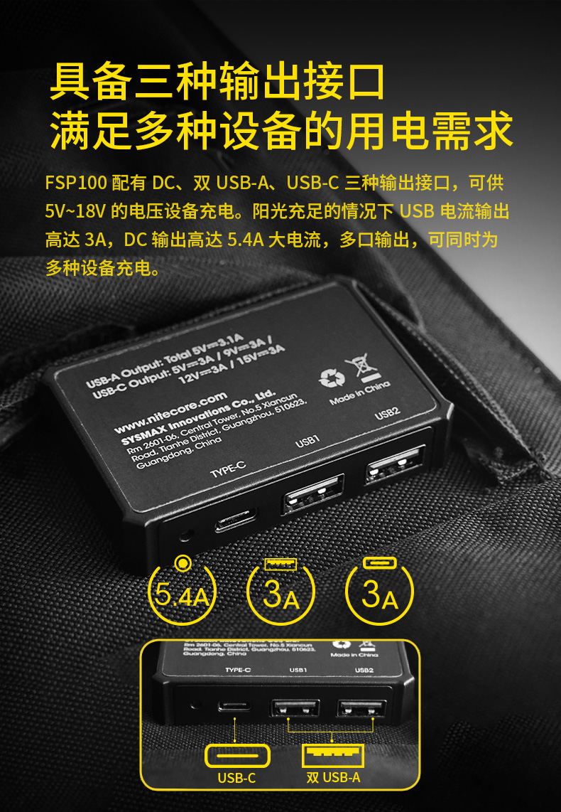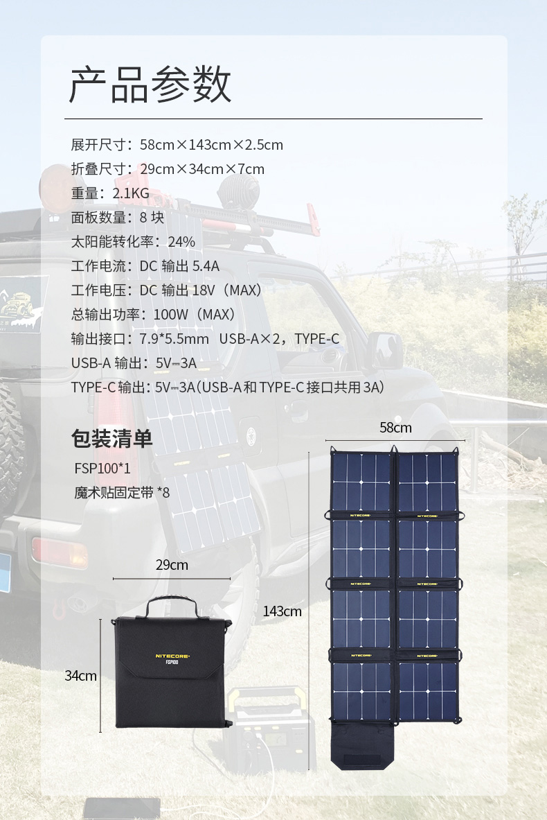 NITECORE奈特科尔FSP100户外便携可折叠太阳能充电板