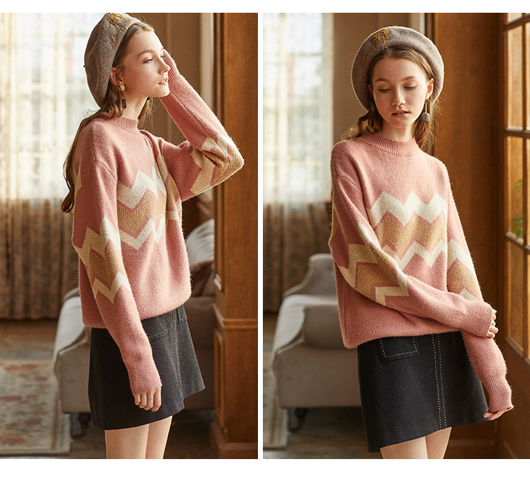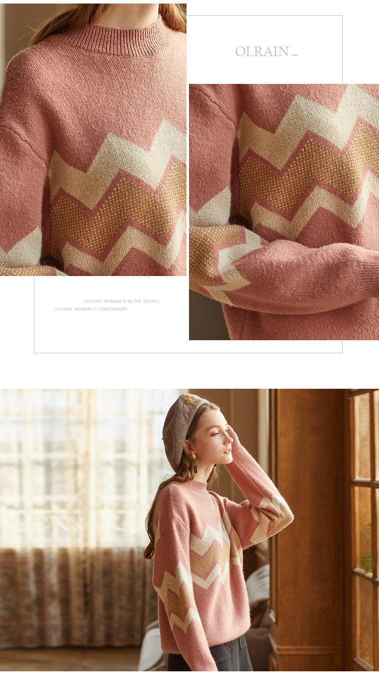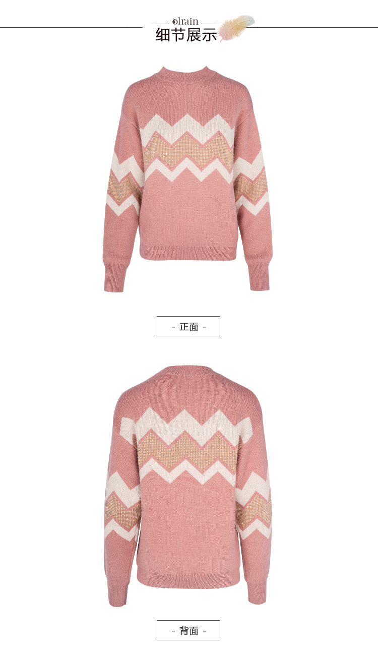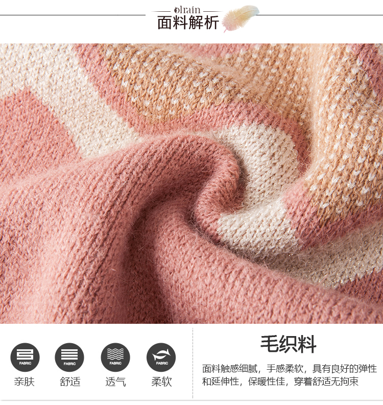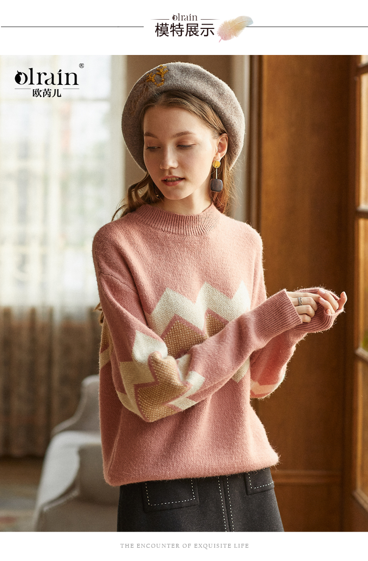 欧芮儿冬装女2018新款宽松显瘦圆领套头打底条纹毛衣女秋冬毛衫