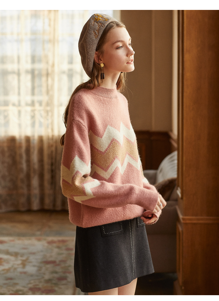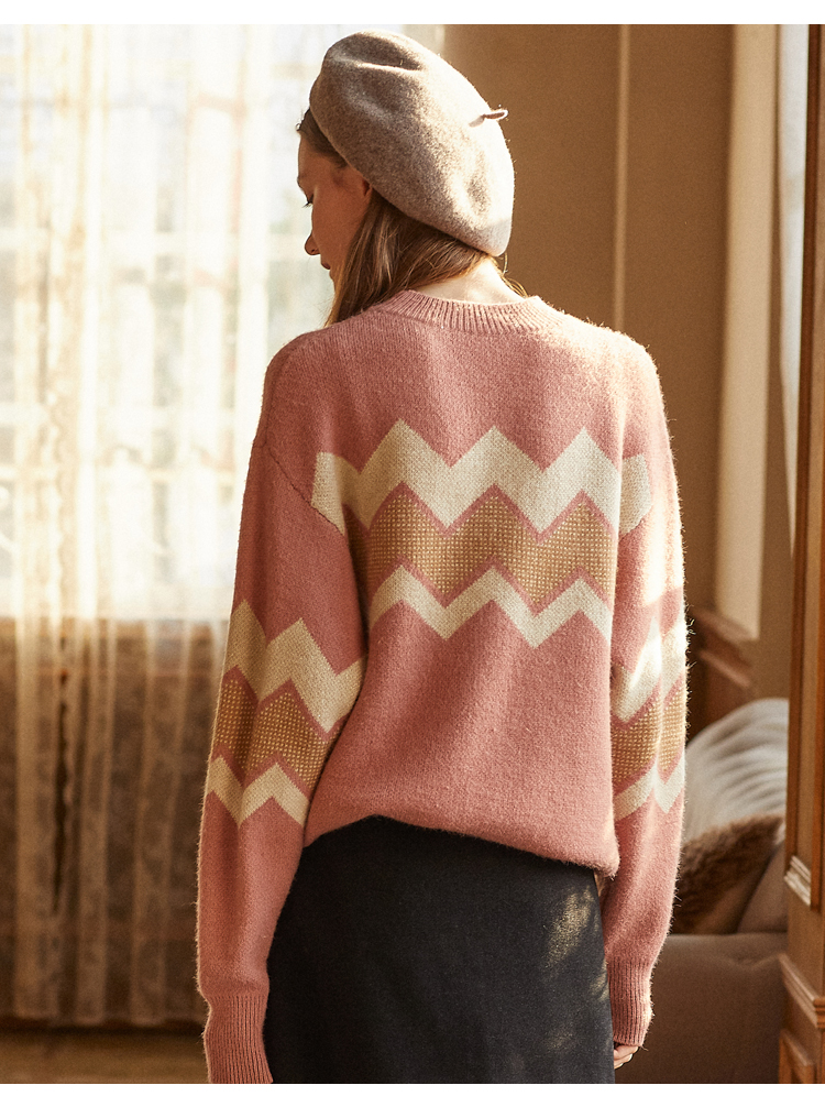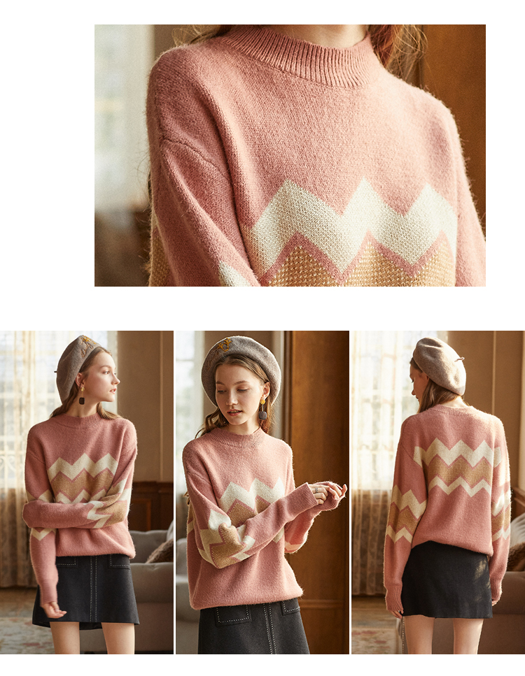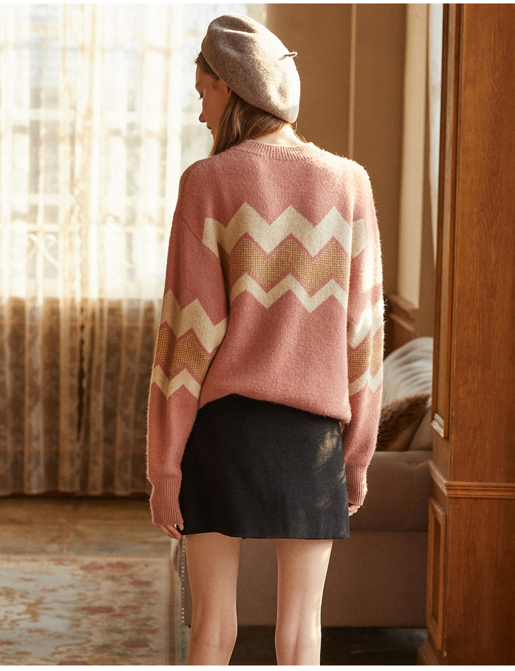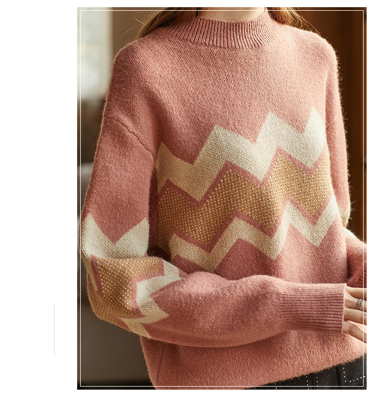 欧芮儿冬装女2018新款宽松显瘦圆领套头打底条纹毛衣女秋冬毛衫