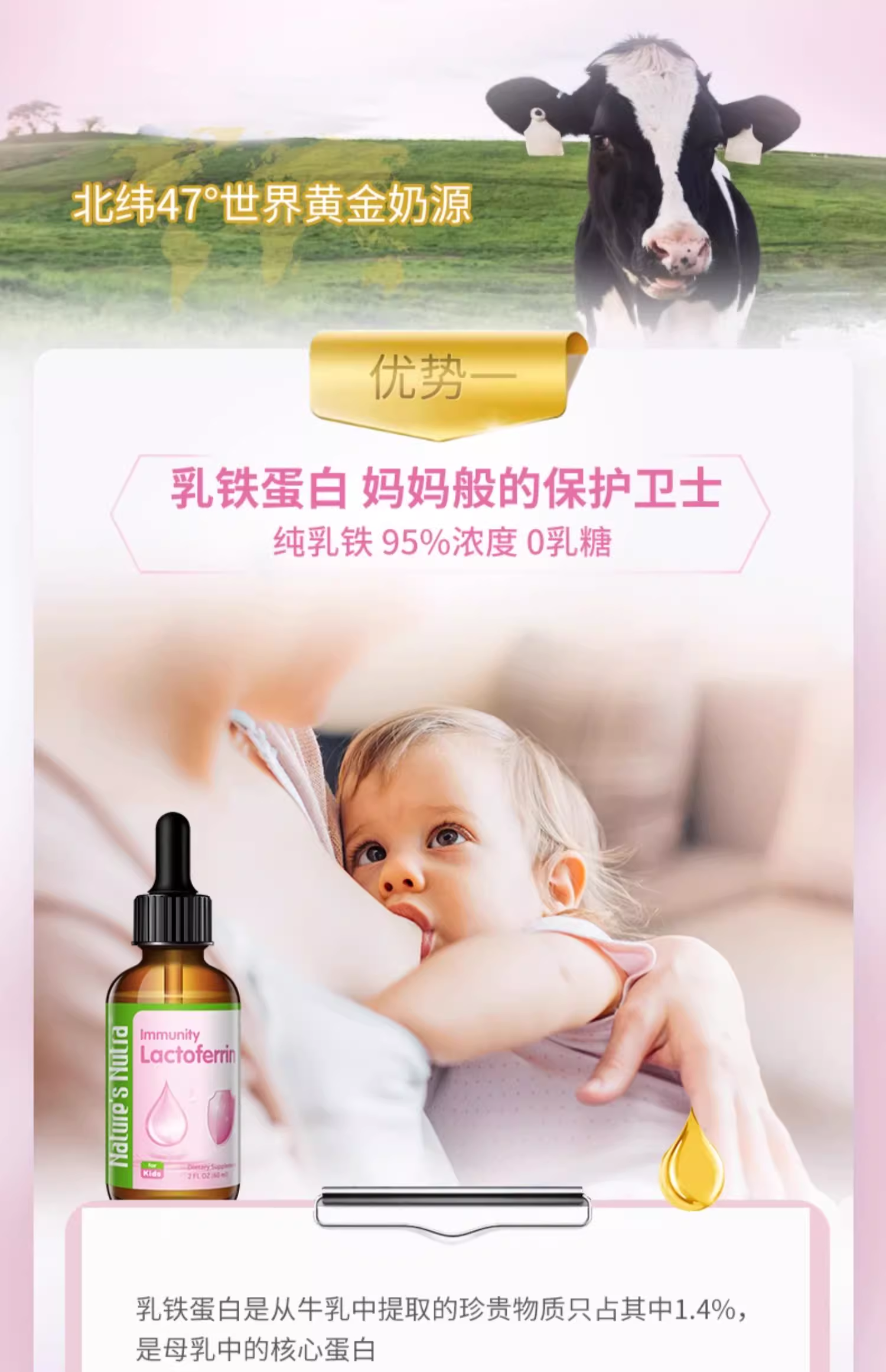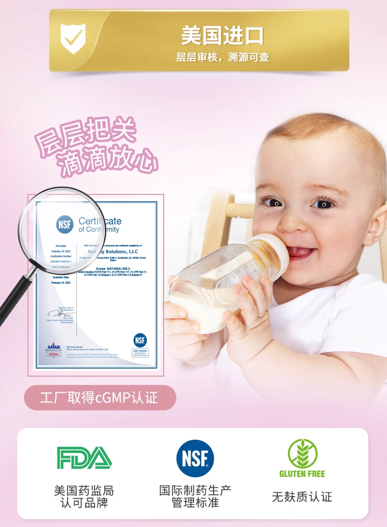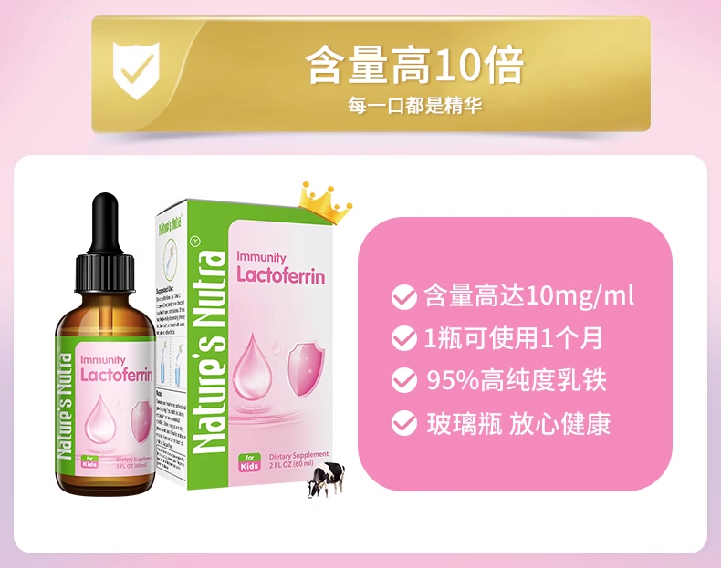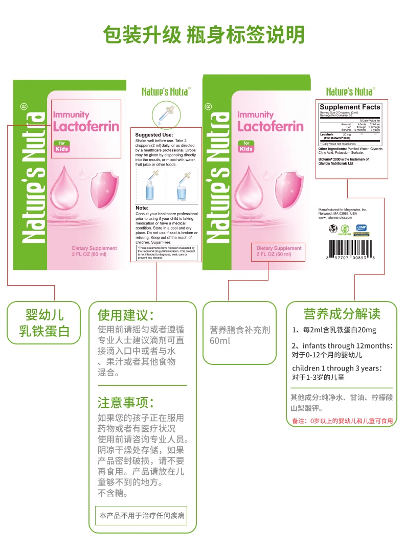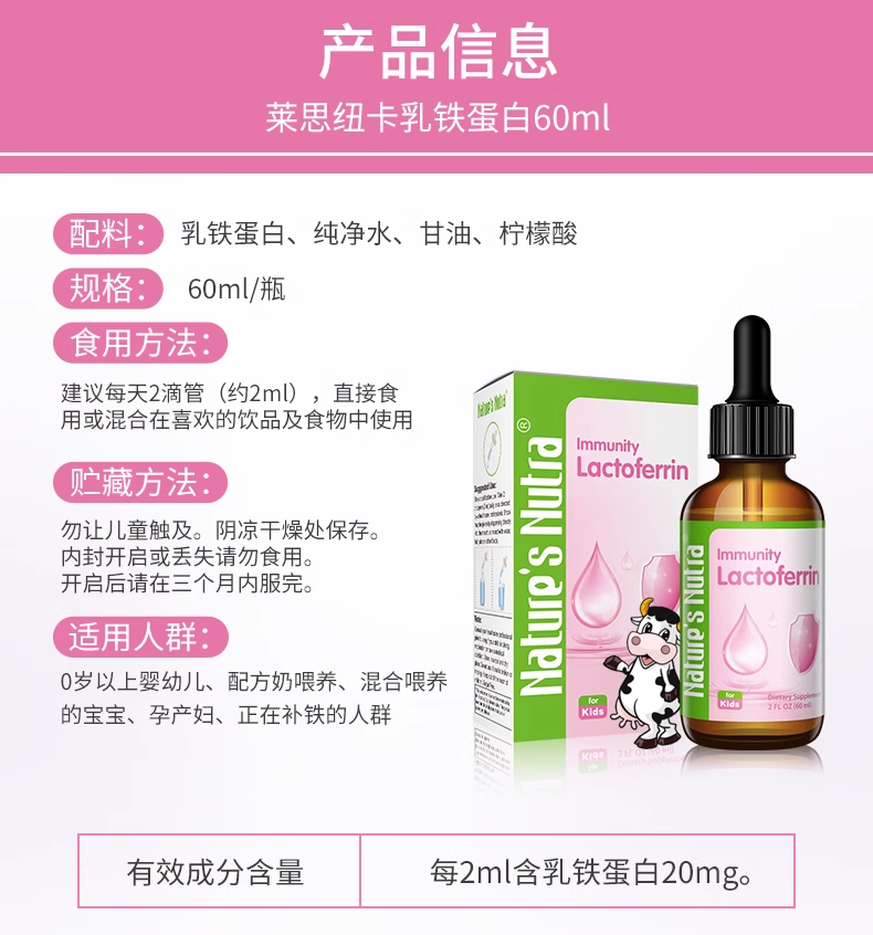 【保税仓发货 包邮包税 新生儿可用】美国莱思纽卡乳铁蛋白滴剂婴幼儿童提高免疫力搭免疫球蛋白粉 60ml