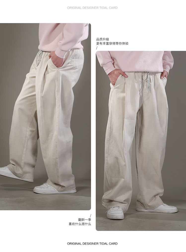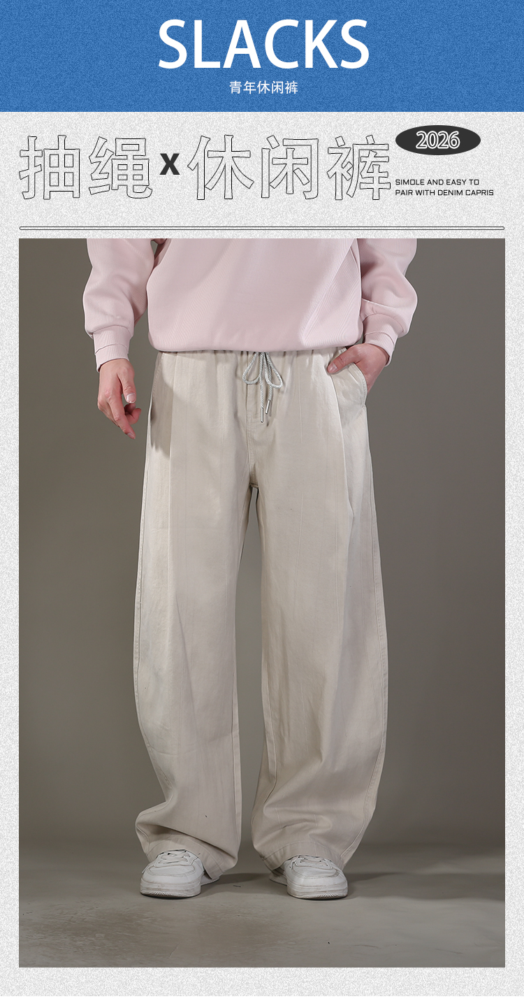 DRONKOO 2026 抽绳半松紧满幅不规则竖纹喷色做旧中厚休闲长裤