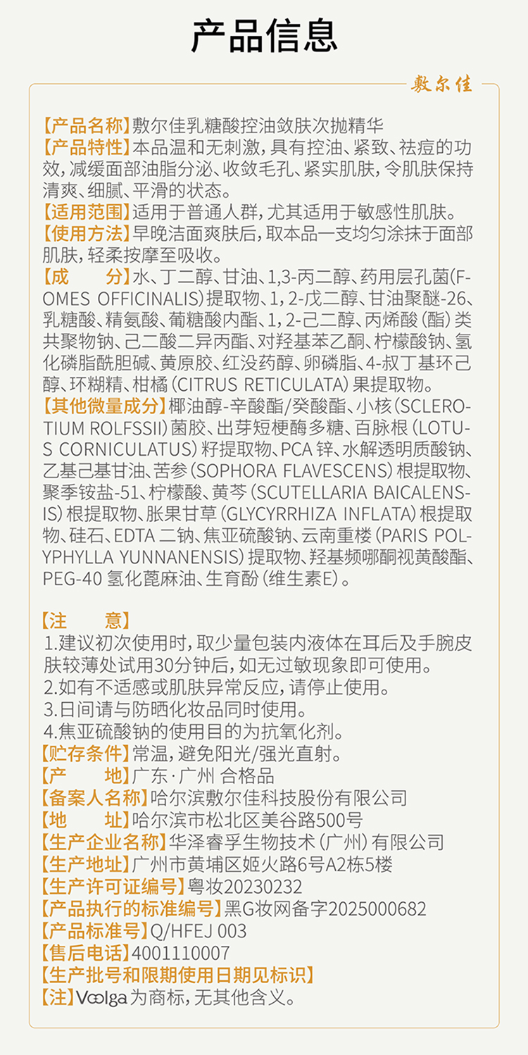 【控油新品上市】敷尔佳乳糖酸控油敛肤次抛精华30支/盒 磨皮次抛