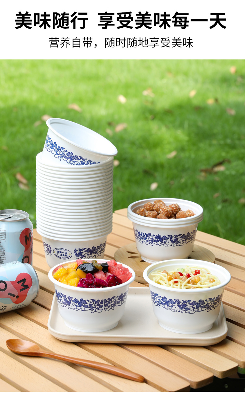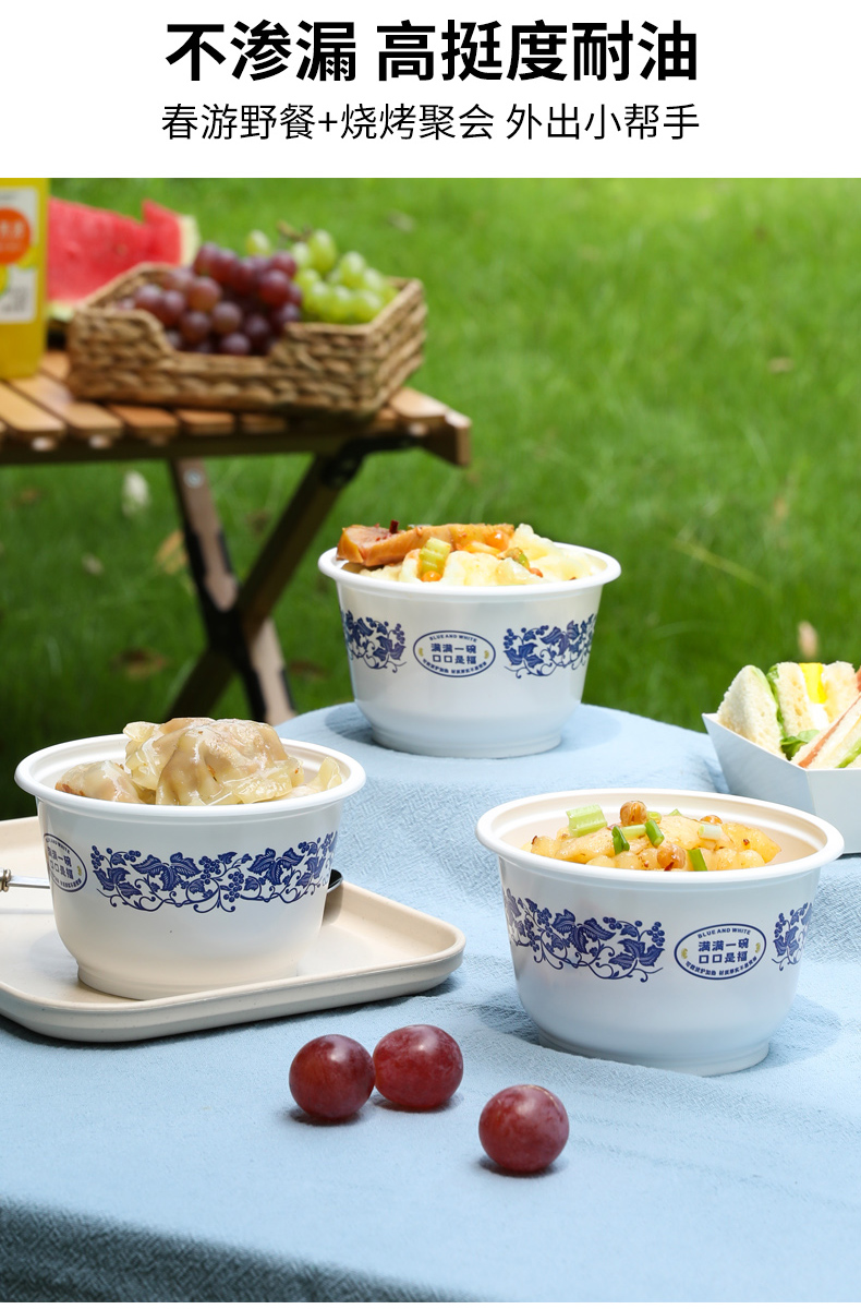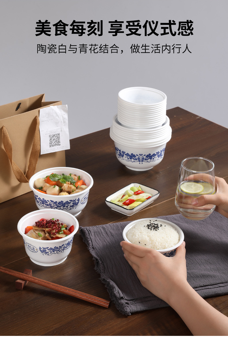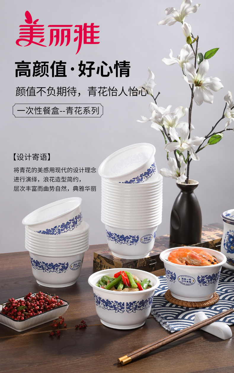 【批发】美丽雅一次性青花碗加厚打包饭盒汤碗 470ml20个/包