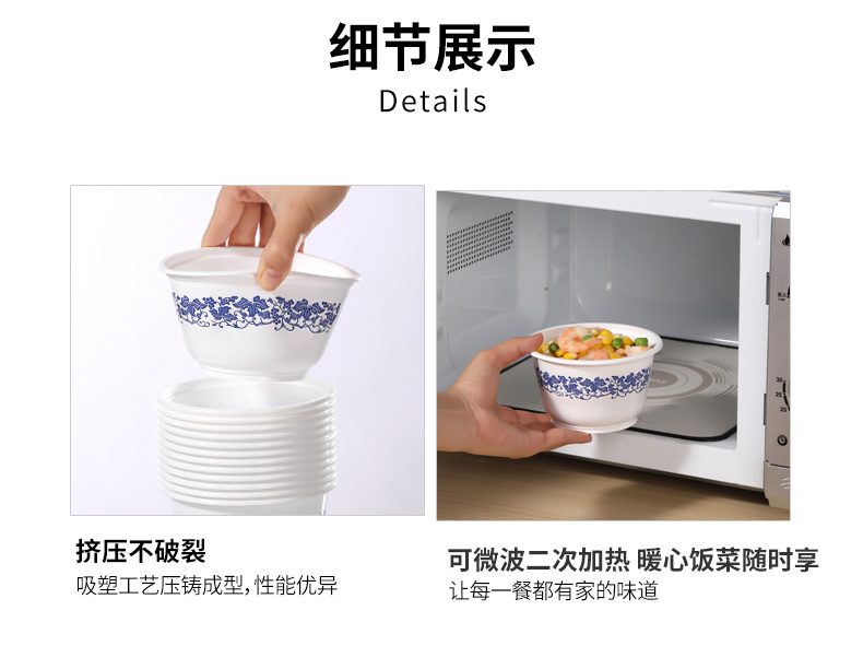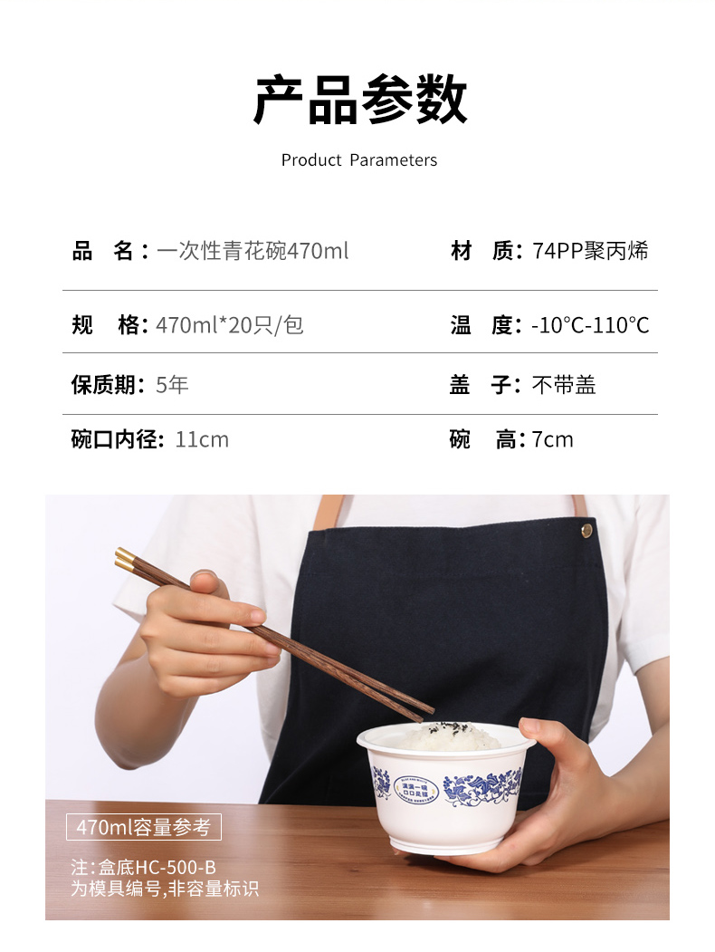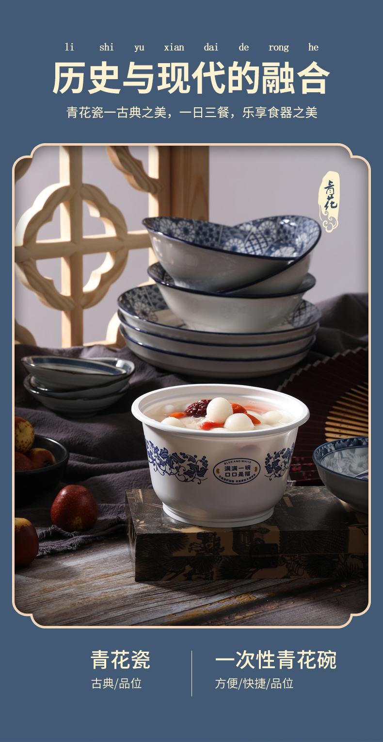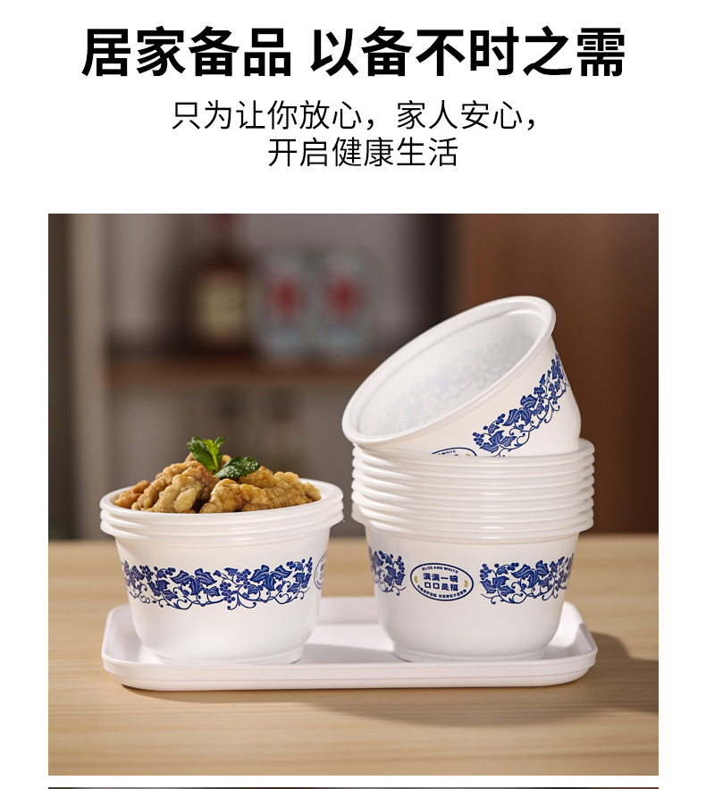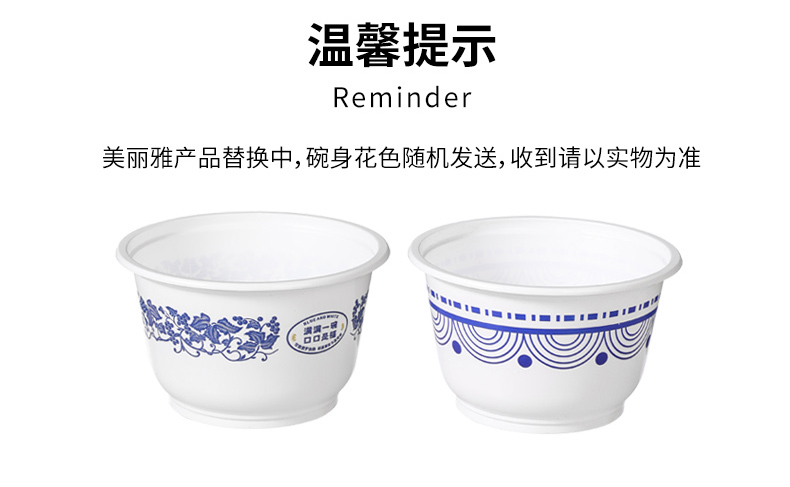 【批发】美丽雅一次性青花碗加厚打包饭盒汤碗 470ml20个/包