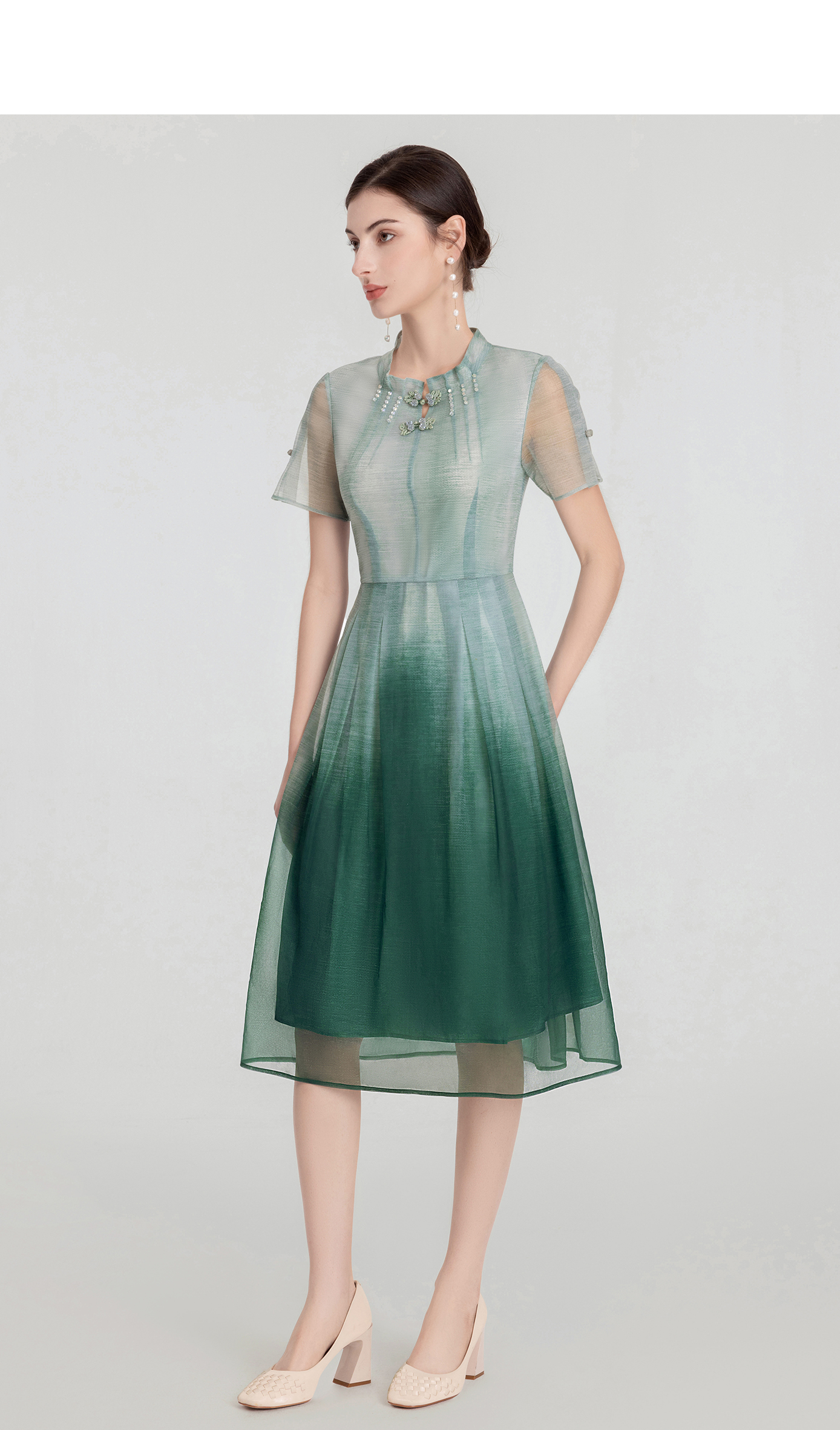 司歌国风渐变短袖连衣裙优雅新中式A891001X