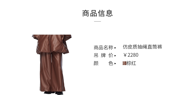 【RUOHAN】蕾虎设计感时尚休闲简约仿皮质抽绳直筒阔腿裤 商品图2