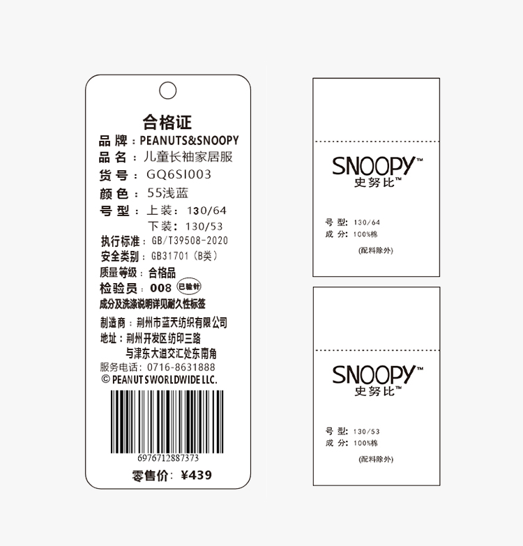 【110-160】【史努比】男童春秋开衫家居服套装